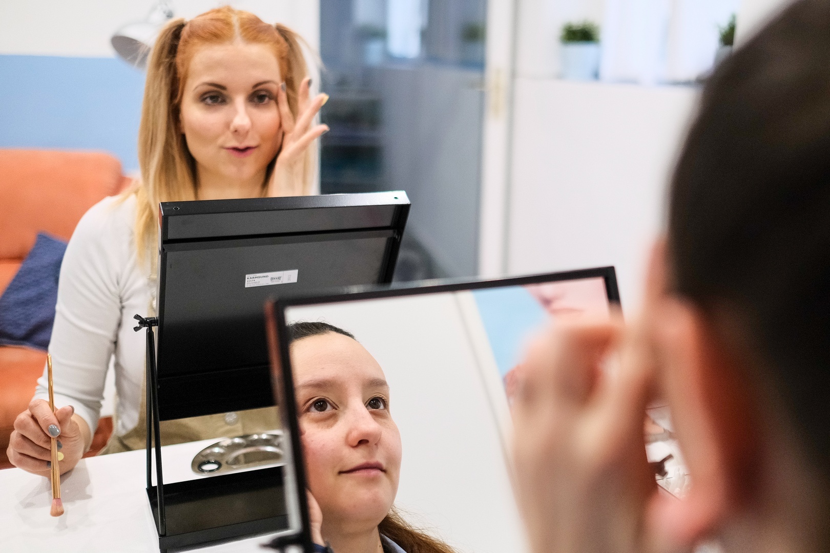 – Azt is megbeszéljük, hogy az illető bőrtónusához milyen alapozó- és szemsminkszínek illenek. Emellett megtanítom neki, hogy a szemformája és az arca sajátosságai alapján mit kell kiemelnie, illetve korrigálnia – ismertette Bukor Ágnes.