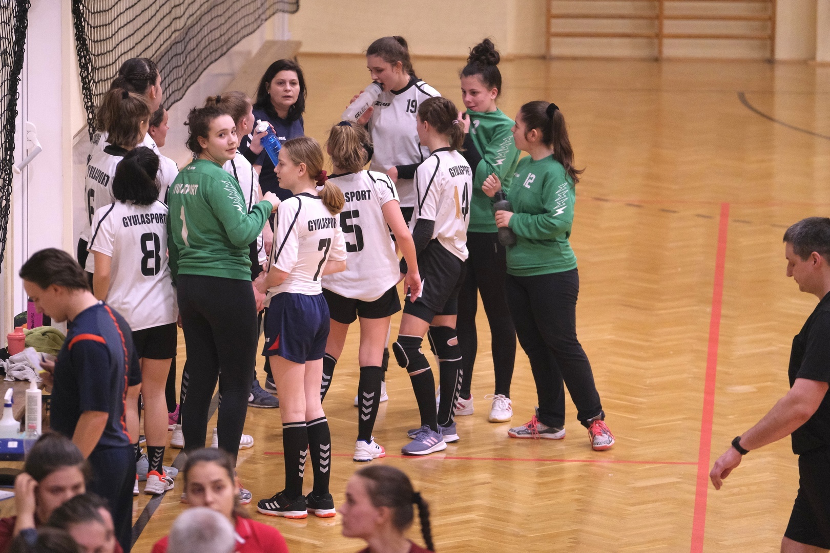 Máthé István, a Gyulasport NKft. kézilabdaszakágának technikai vezetője elmondta, a vendégcsapat kezdte jobban a találkozót. A hatodik percig a gyulai együttes szaladt az eredmény után, ám 3-3-as döntetlennél megváltozott a játék képe. Tapasztó Boglárka 8, Mócz Martina pedig 4 góllal lendítette fel csapatát, amelynek köszönhetően a korosztályos csapat állva hagyta ellenfelét. A hatékony támadójátékot Juhász Panni kapusteljesítménye támogatta meg, így a fürdővárosi alakulat a félidő végére tekintélyes előnyt harcolt ki magának.