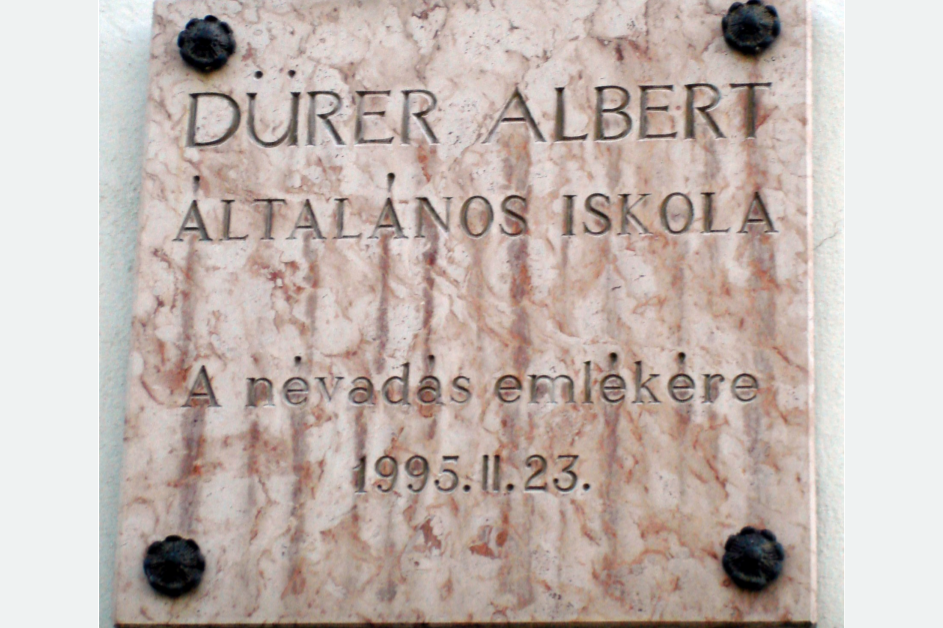 26 évvel ezelőtt, 1995. február 23-án a Dürer Albert általános iskola emléktáblát állított épületének falára az intézmény névfelvételének emlékére.
