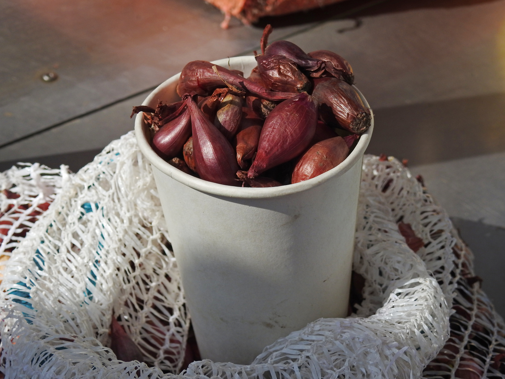 A standos ottjártunkkor vörös- és lila hagymát is árult, pohárral kimérve. Egy adag 400 forintba került.
