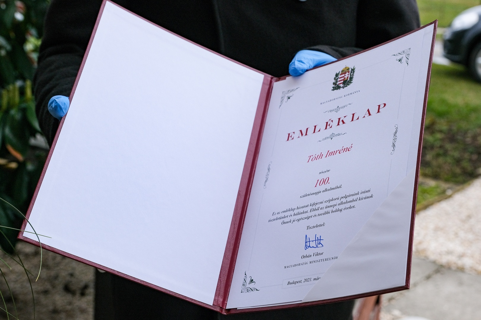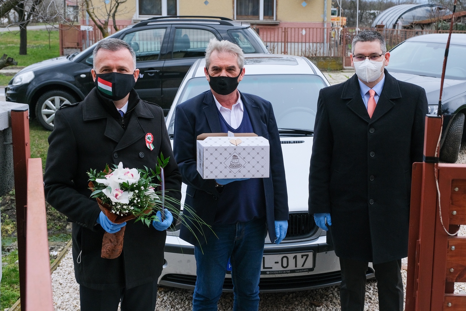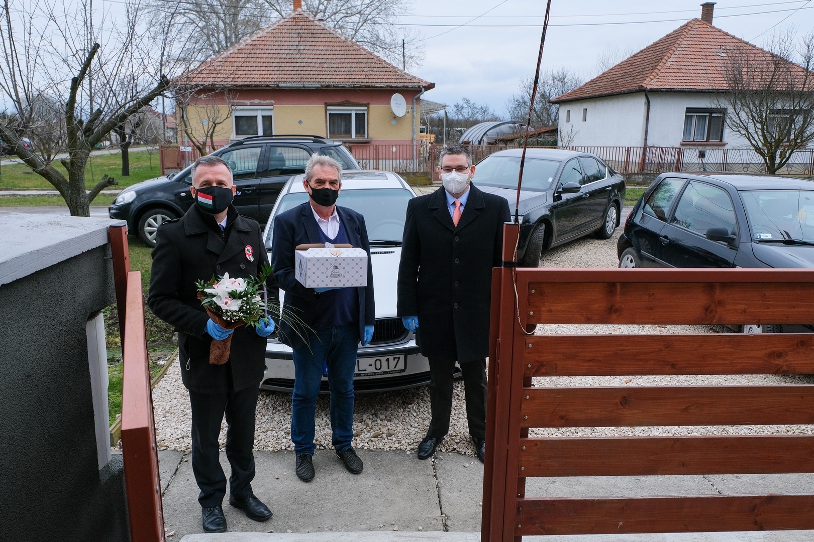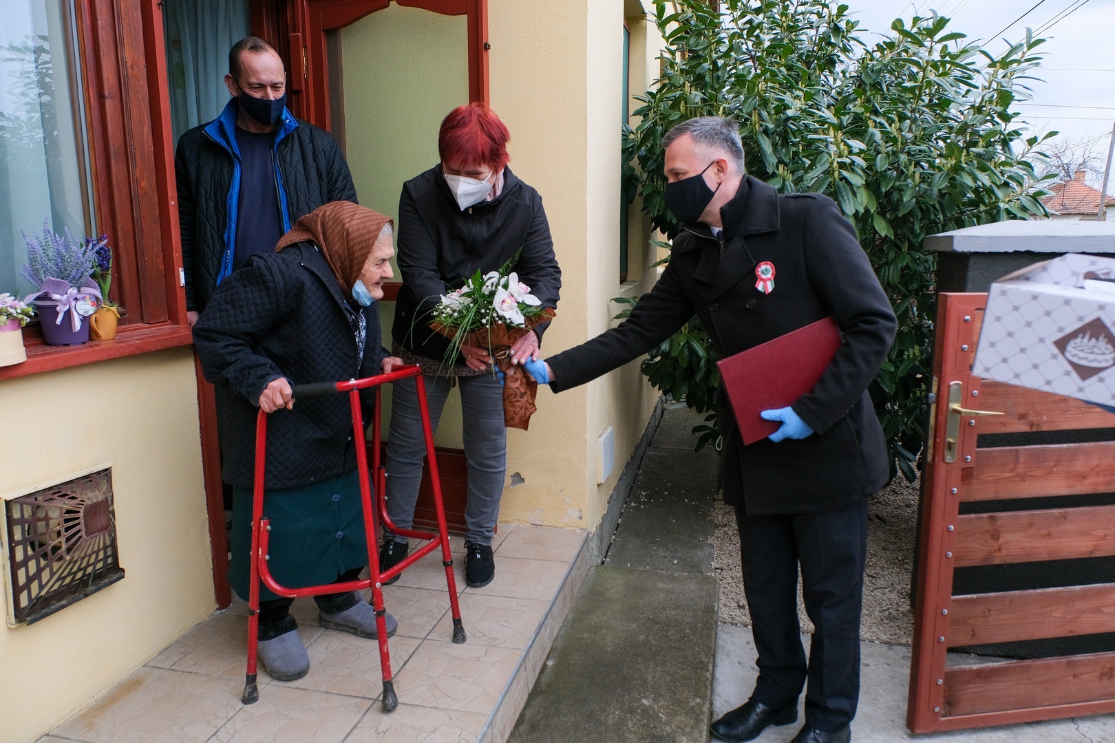 Virággal, tortával és emléklappal köszöntötte Tóth Imrénét századik születésnapja alkalmából Görgényi Ernő polgármester, Csige Gábor jegyző és Szabó Károly önkormányzati képviselő március 16-án.