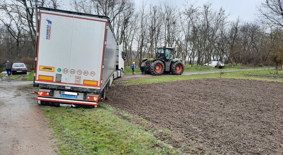 Miután a traktoros megérkezett, az autómentő javasolta, hogy háttal húzzák ki a kamiont, de a bolgár férfi közölte, hogy csak előre húzhatják ki.