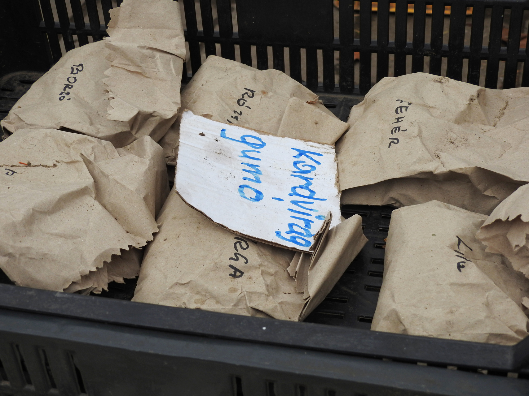 Az árus elmondta, fehér, lila, bordó, piros, sárga és rózsaszín kardvirág hagymája kapható nála. Hozzátette, nem hibrid fajtákat árul, a hagymákból kisebb virágú növények nőnek majd.