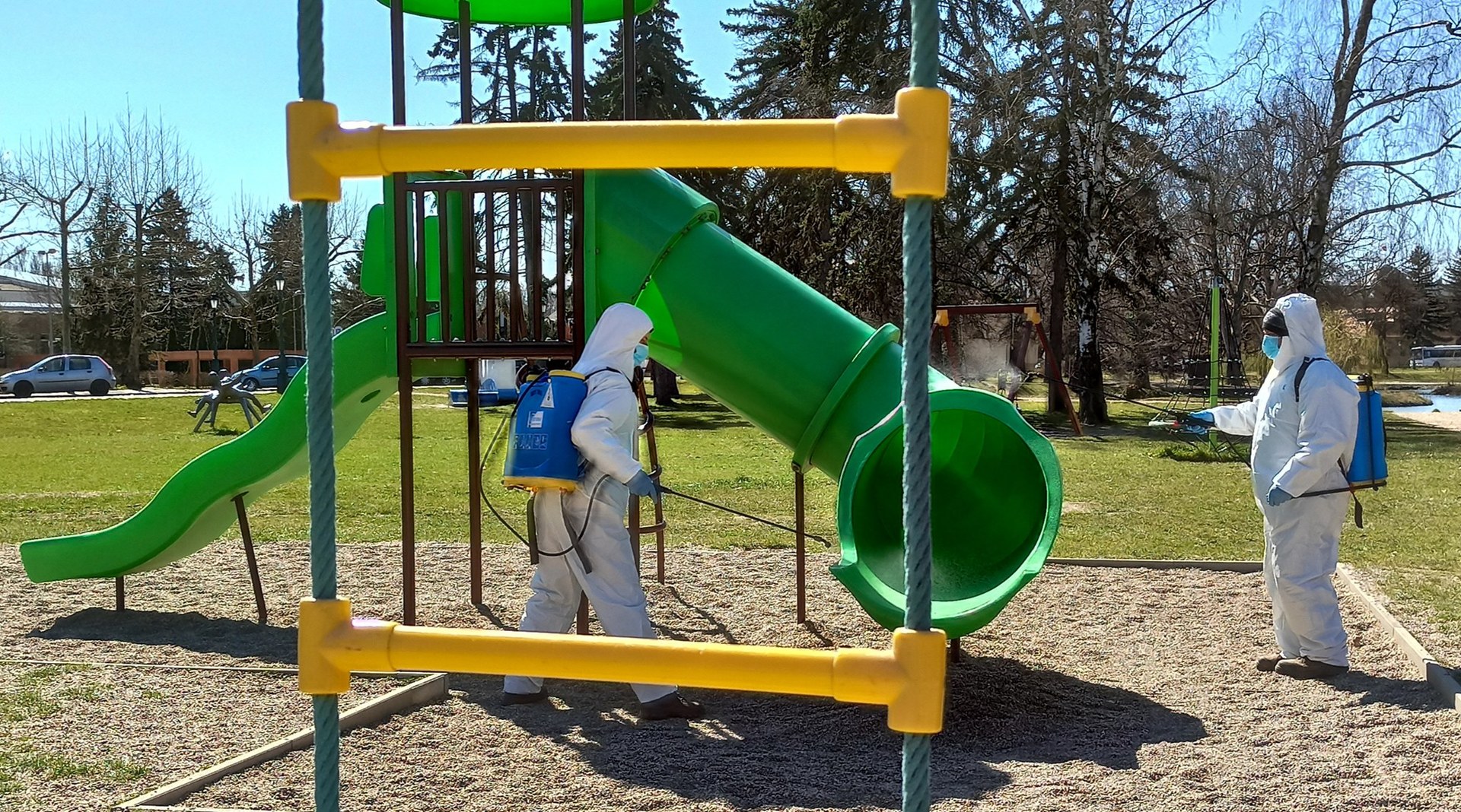 Elmondta, a játszótereken a homokozókat is lepermetezik fertőtlenítő oldattal, miután kapával és rotakapával fellazították a homokot.