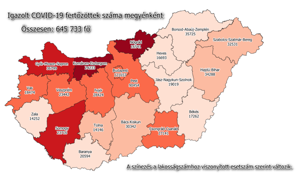 A kormányzati portálon azt írták: 645 733-ra nőtt a Magyarországon azonosított fertőzöttek száma. Az elhunytaké 20 435-re emelkedett, a gyógyultak száma 402 964.