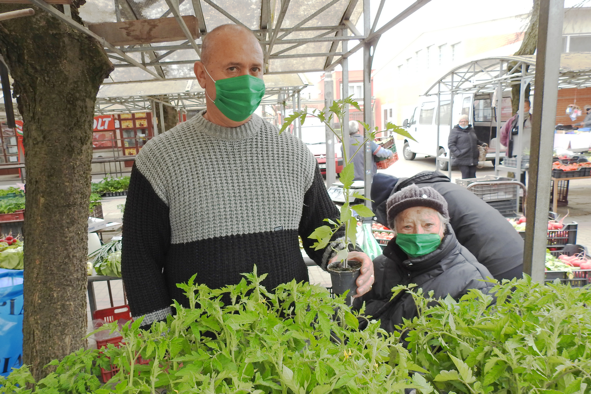 Néhány standon már megjelentek a palánták a gyulai piacon, a fagytűrő növények mellett paradicsompalántát is árulnak egy-két elárusítóasztalnál.