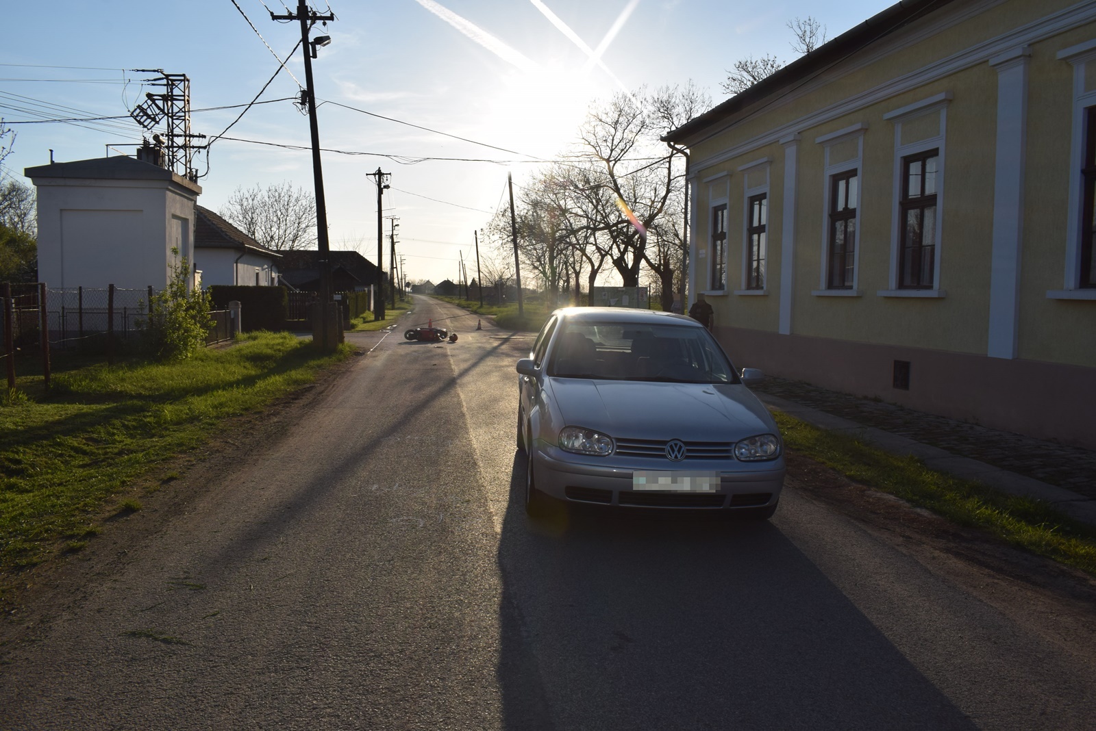 Egy segédmotor-kerékpáros és egy személyautó ütközött össze Orosházán, a Mátyás király utca és a Horváth György utca kereszteződésében. A segédmotoros kerékpárt vezető férfi, aki a gyanú szerint ittasan vezetett, könnyebben megsérült.