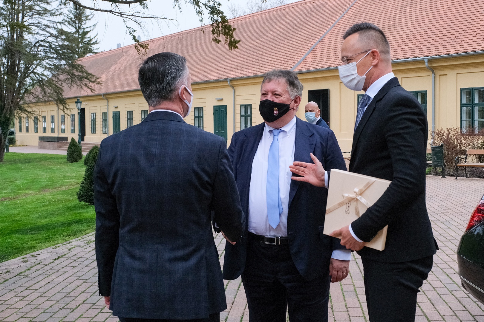 Az Almásy-kastélyban folytat államközi tárgyalásokat Szijjártó Péter külgazdasági és külügyminiszter, valamint Bogdan Aurescu, Románia külügyminisztere – tájékoztatott hivatalos közösségi oldalán Görgényi Ernő polgármester.