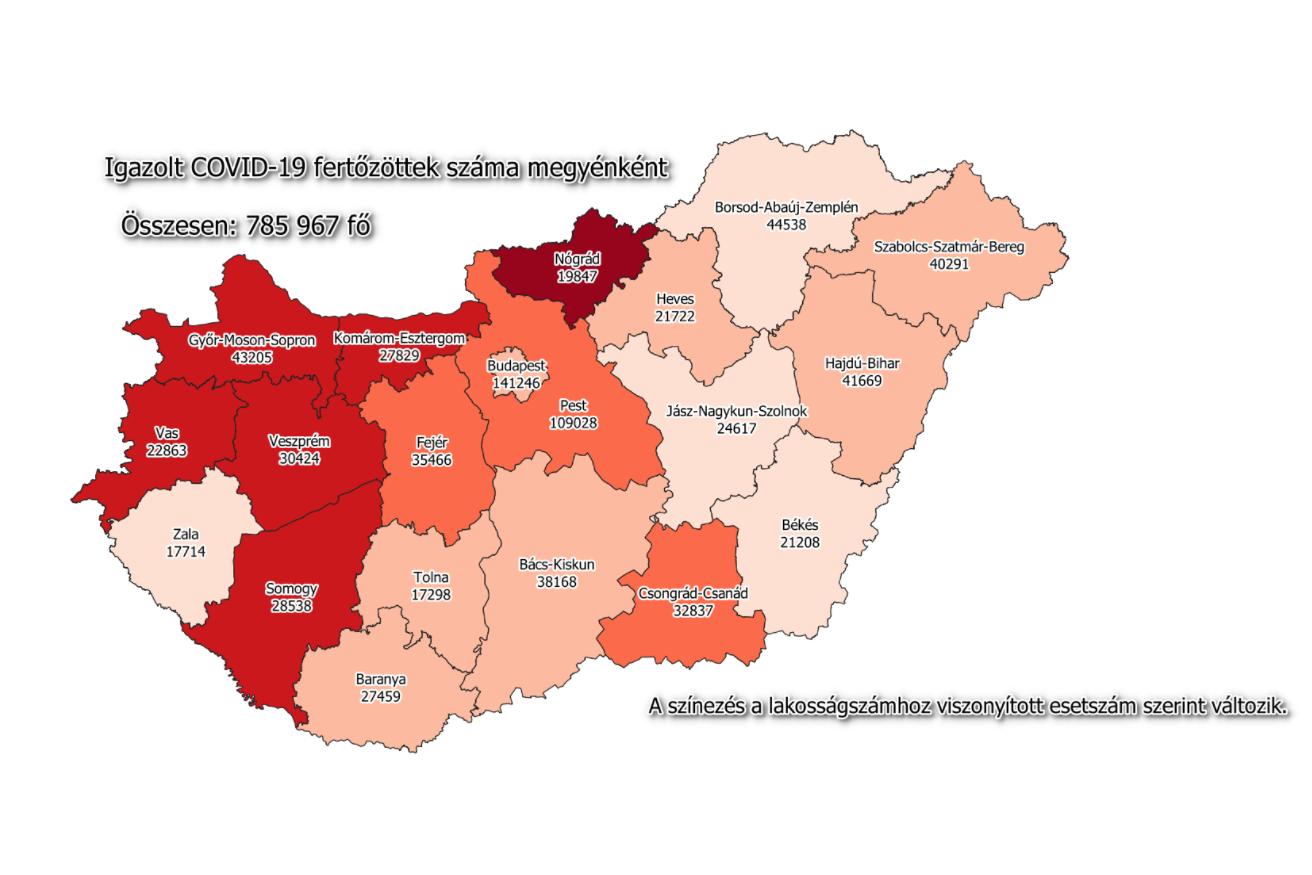 A kormányzati portálon azt írták: 785 967-re nőtt a Magyarországon azonosított fertőzöttek száma. Az elhunytaké 28 173-ra, a gyógyultaké 538 965-re emelkedett.