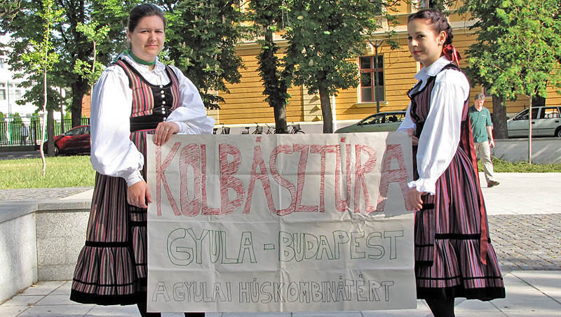 Kolbásztúrára elkeresztelt akcióval kívánják felhívni az ország figyelmét a Gyulai Húskombinát Zrt. pénzügyi gondjaira Gyulán. A helyi képviselő-testület jobboldali frakciójának néhány tagja ma reggel a gyulai Kossuth térről indult el, több település érintésével, Budapestre a Nemzeti Fejlesztési és Gazdasági Minisztériumba, hogy átadják Varga István miniszternek azt a határozatot, amit a május 12-ei rendkívüli ülésen fogadott el a gyulai képviselő-testület.