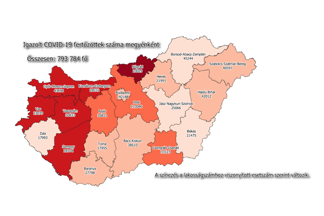 A kormányzati portálon azt írták: 793 784-re nőtt a Magyarországon azonosított fertőzöttek száma. Az elhunytaké 28 888-ra, a gyógyultaké 592 440-re emelkedett.