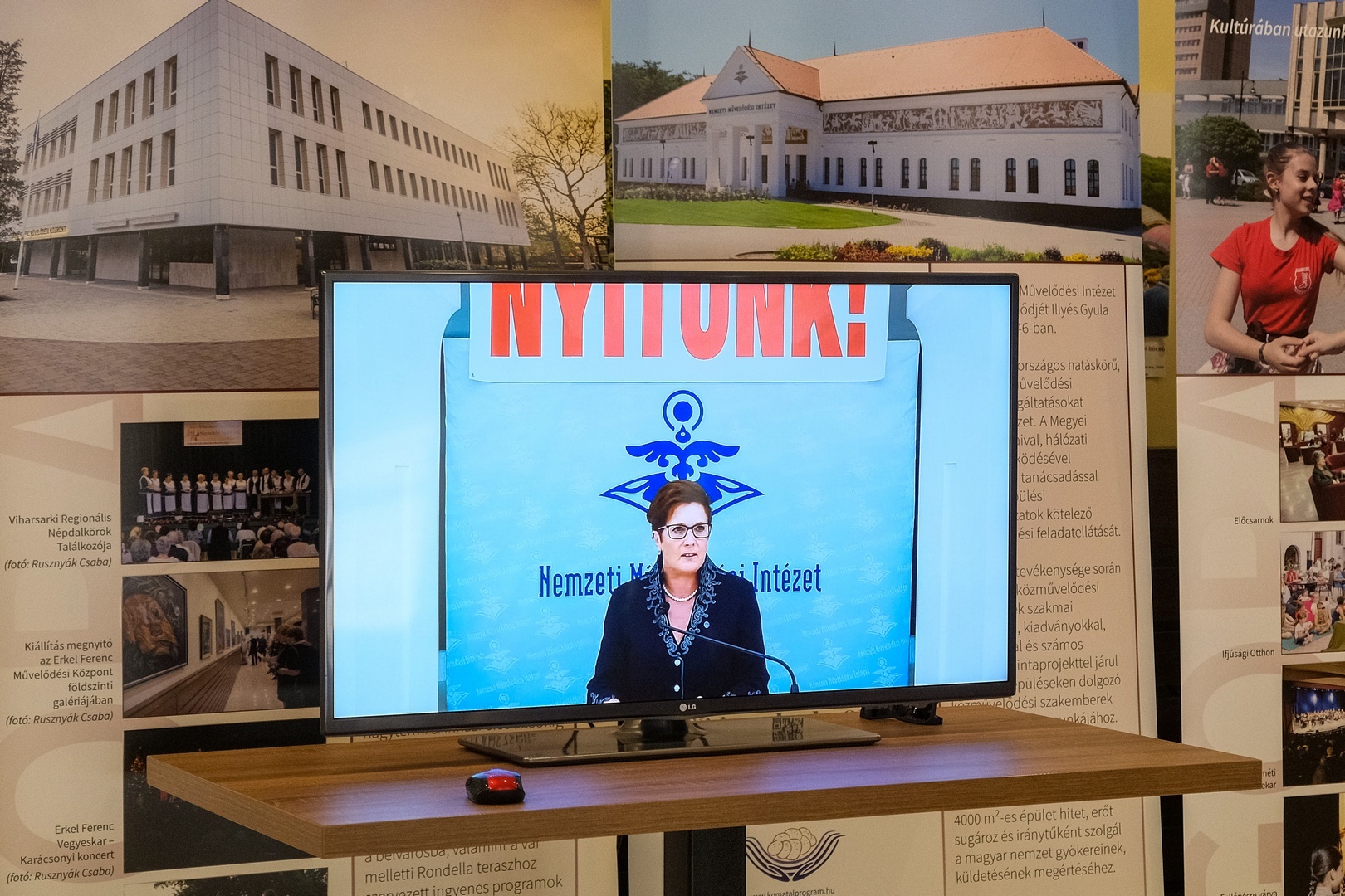 Katona Katalin, a művelődési központot is működtető Erkel Ferenc NKft. közművelődésért felelős ügyvezető igazgatója beszédében köszönetet mondott a helyi városvezetésnek, amiért a koronavírus-járvány idején is elsődleges szempont volt, hogy minden munkatársuk megtarthassa állását. Kifejtette: a színfalak mögött végig munka folyt, kiállítást, online eseményeket szerveztek.