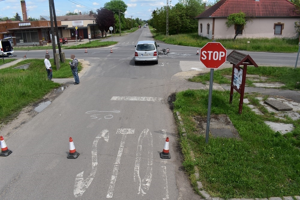 Egy személygépkocsi vezetője nem adott elsőbbséget és elütött egy kerékpáros nőt, aki elesett és könnyebben megsérült Gyomaendrődön, a Selyem út és a Blaha Lujza utca kereszteződésében.