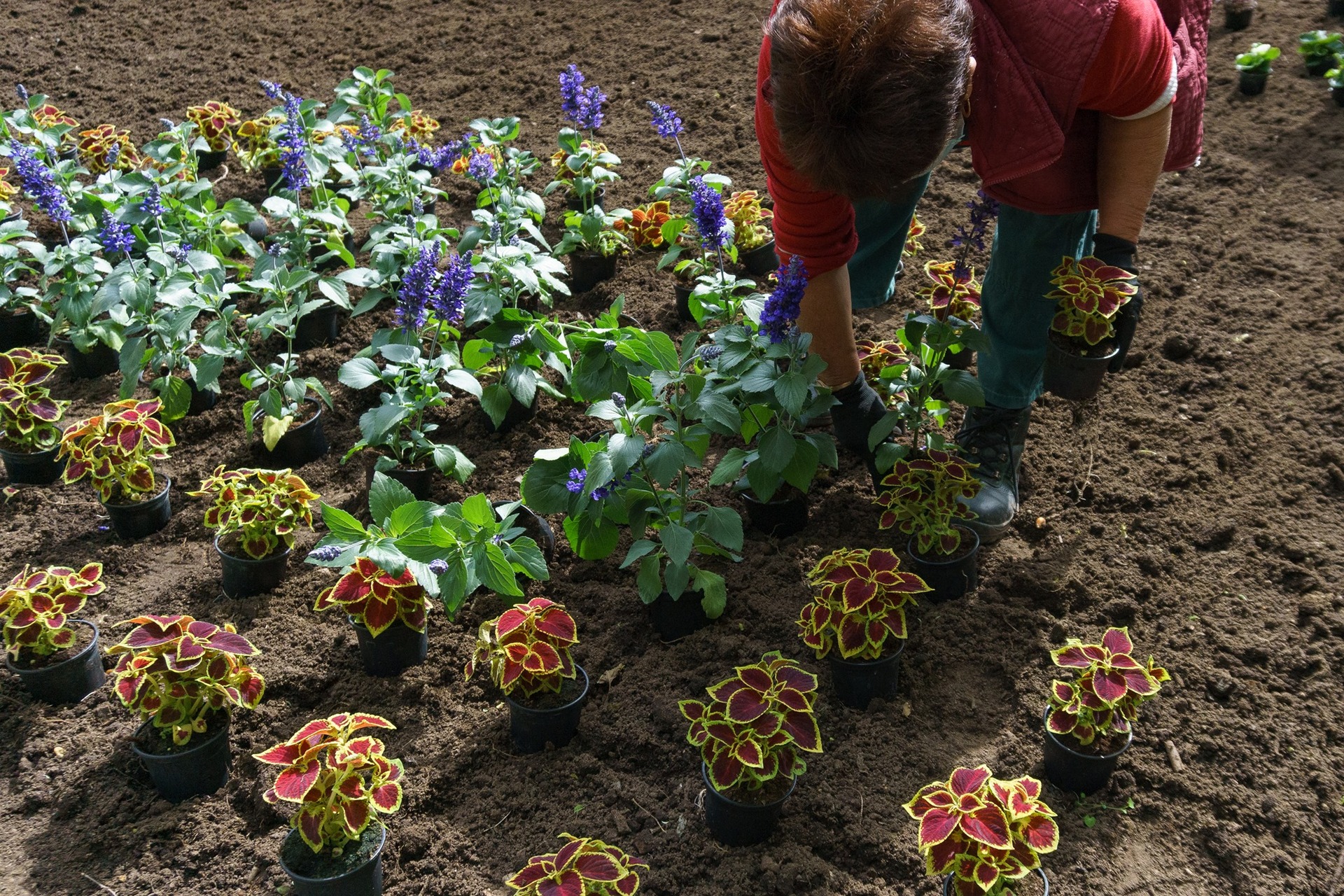 Az ágyásokba többek között begónia, díszcsalán, sétányrózsa, díszdohány, petúnia, rézvirág, varjúháj és kúpvirág kerül. A palánták pontos helyéről rajz is készül, hogy a kiültetés rendje megfelelő legyen.