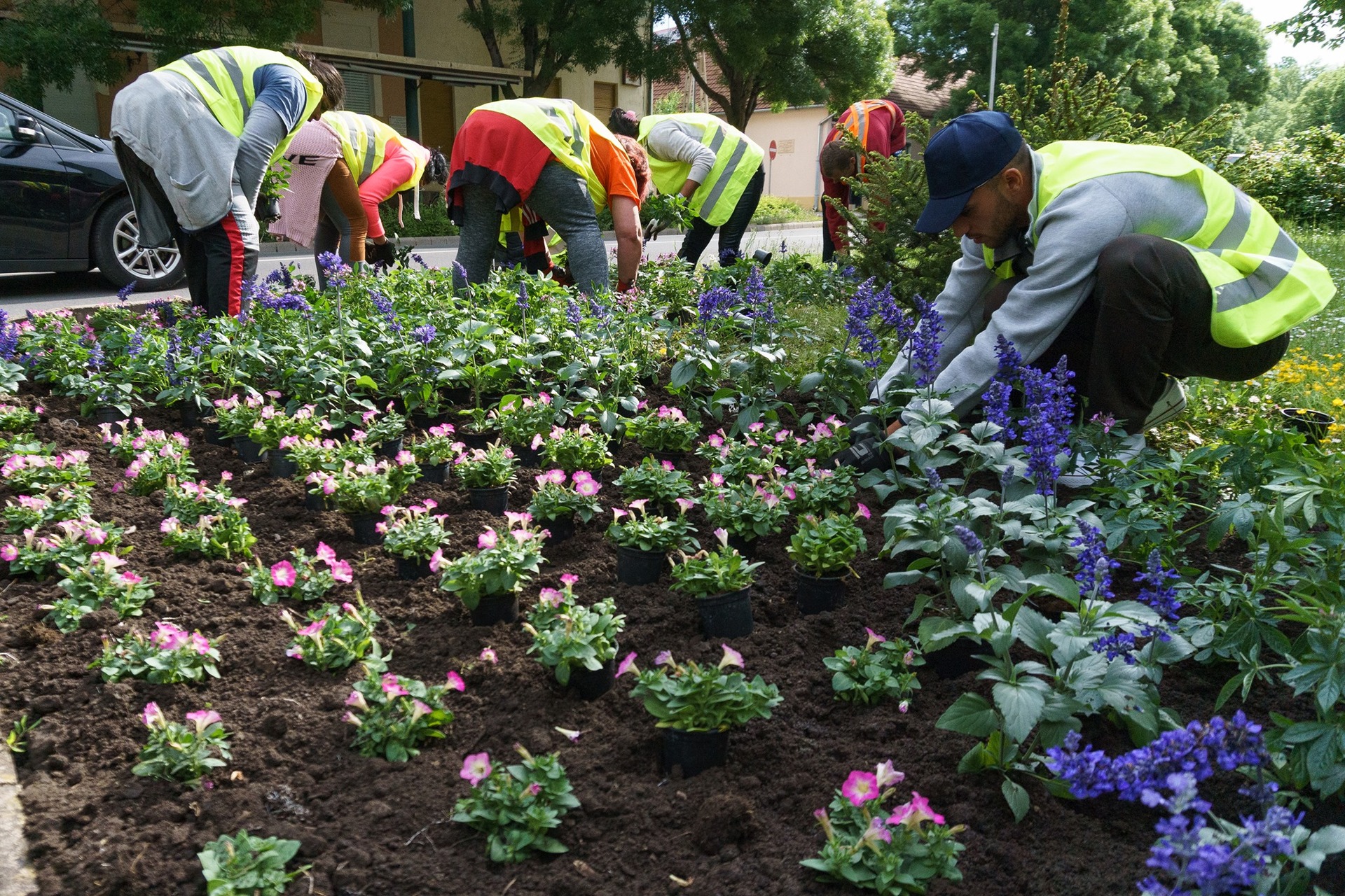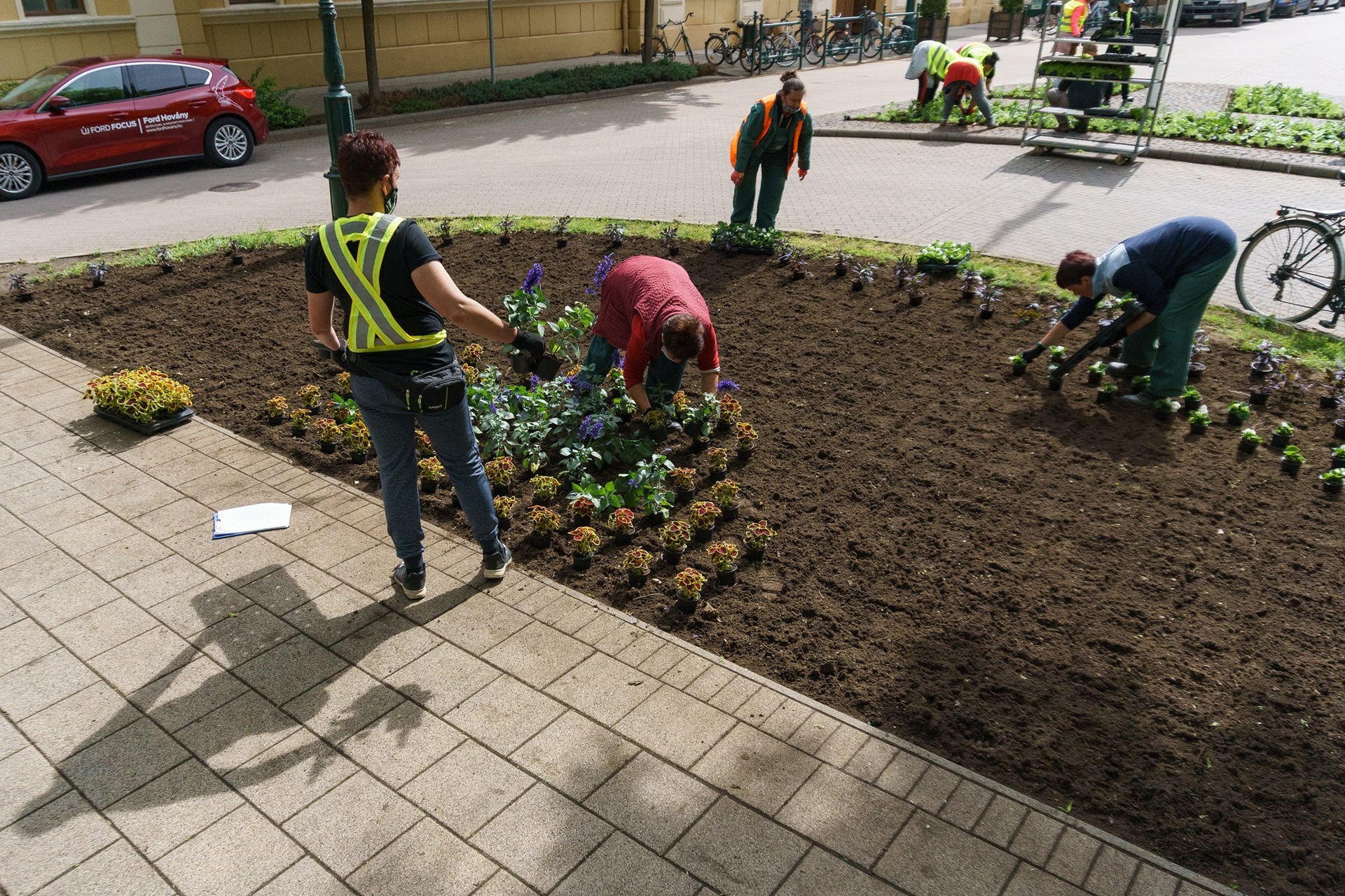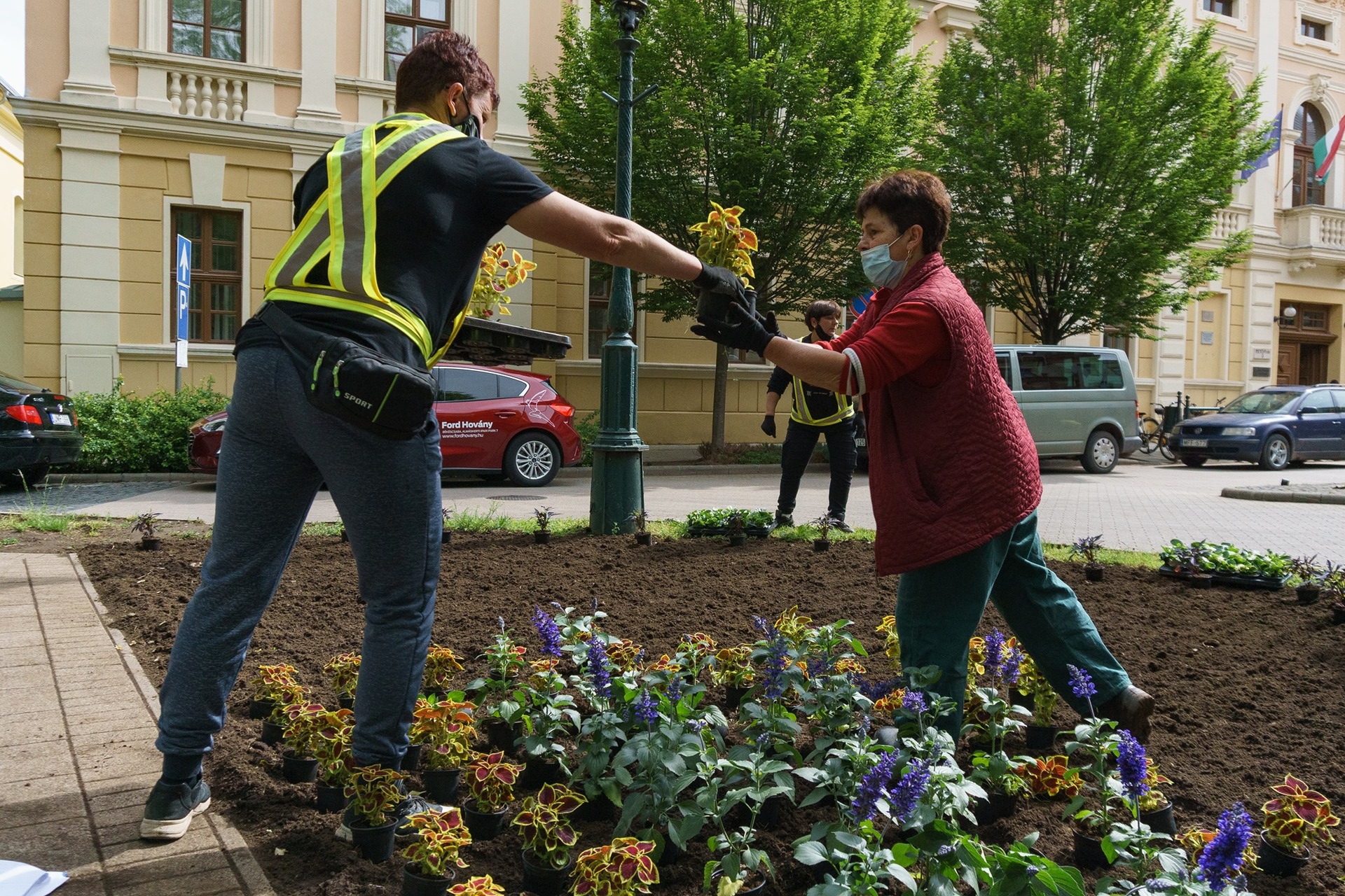 A virágokat Szászné Várkonyi Adrienn városi főkertész irányításával 10–12 nap alatt ültetik el a Gyulai Közüzemi NKft. munkatársai.