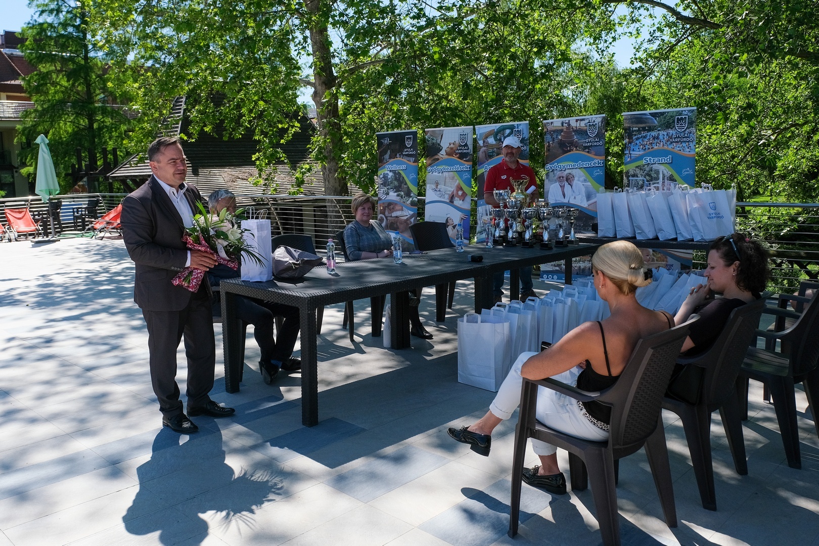 Kónya István alpolgármester köszönetet mondott a fiatal úszóknak, akiknek versenyek és kihívások nélkül kellett folyamatosan készülniük.