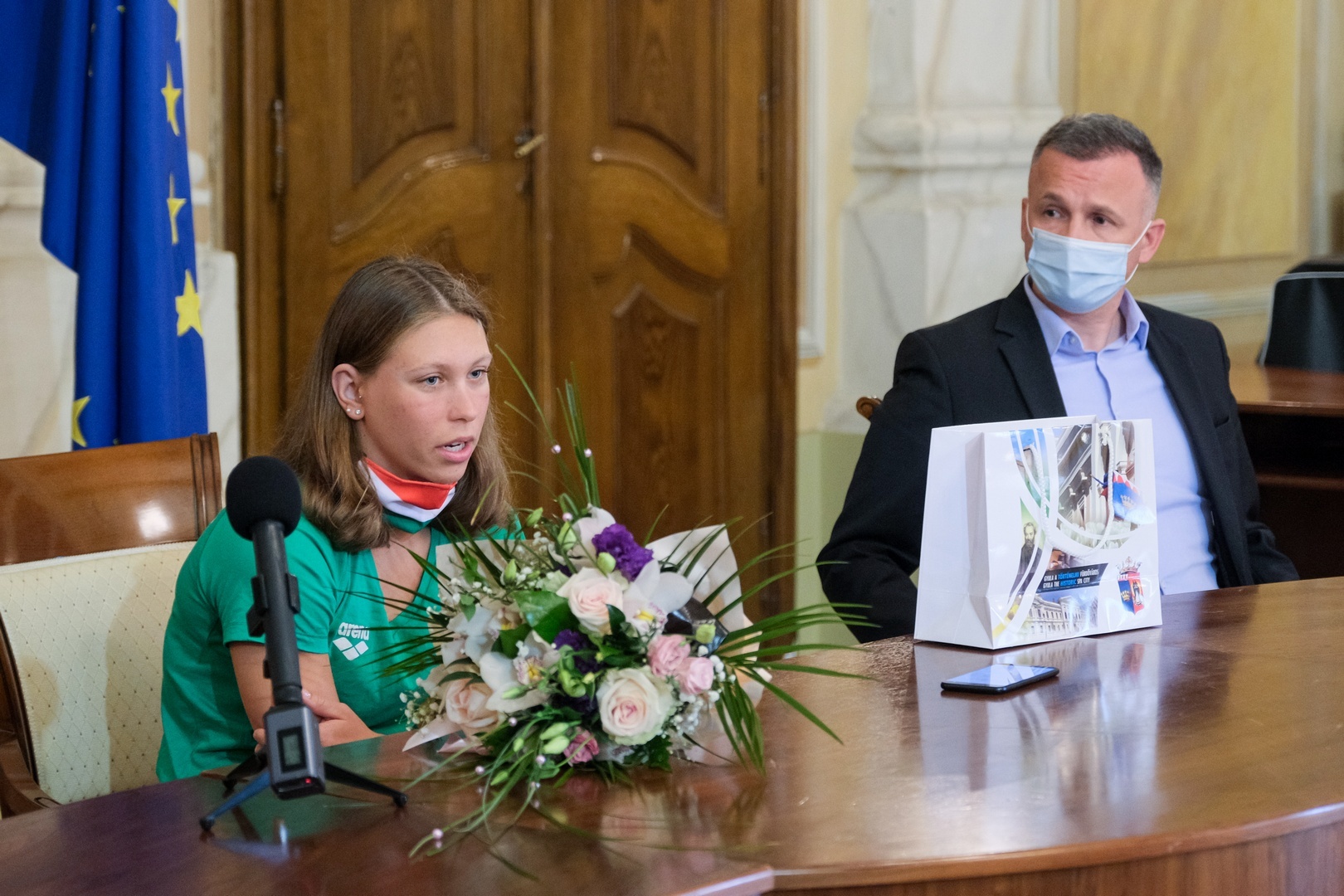 – Gyula város minden polgára nevében gratulálok a gyulai úszósport jelenlegi legnagyobb tehetségének, a közelmúltban megrendezett úszó-Eb-n 4x200 m-es női gyorsváltóban ezüstérmet szerzett Veres Laurának és edzőjének, Tóth Andrásnak. Laura – aki az idei Felnőtt Úszó Országos Bajnokság legfiatalabb egyéni bajnoka is – mindannyiunk számára példát mutat elkötelezettségével és kitartásával – fejtette ki.