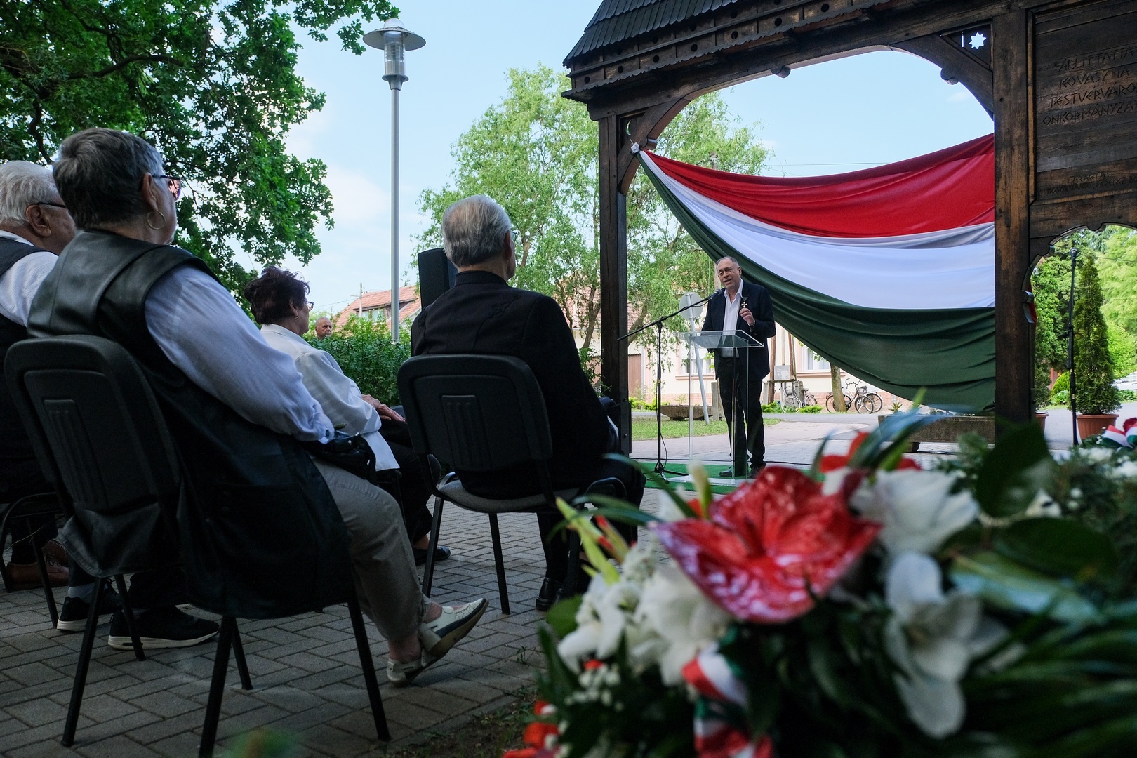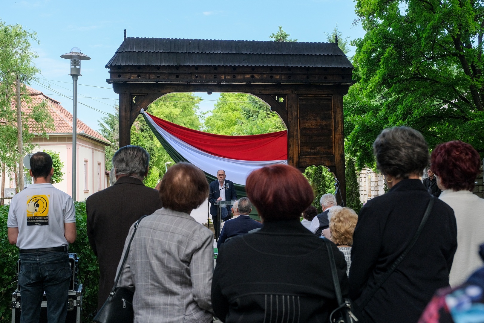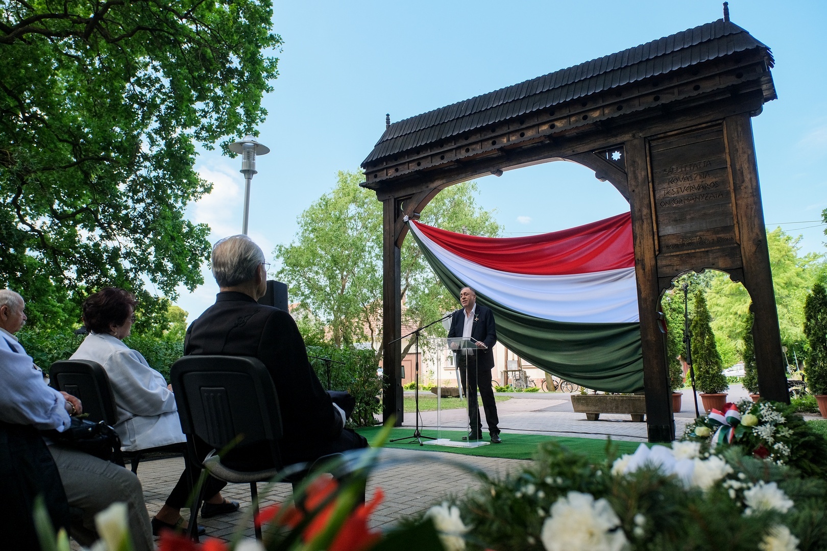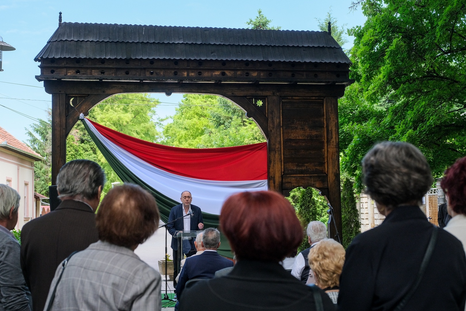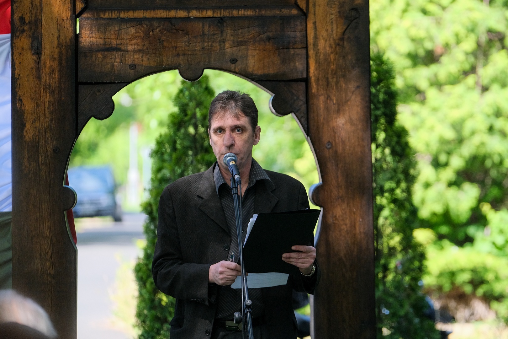 A nemzeti összetartozás napján Párducz László mondott beszédet a Csigakertben található székelykapu előtt