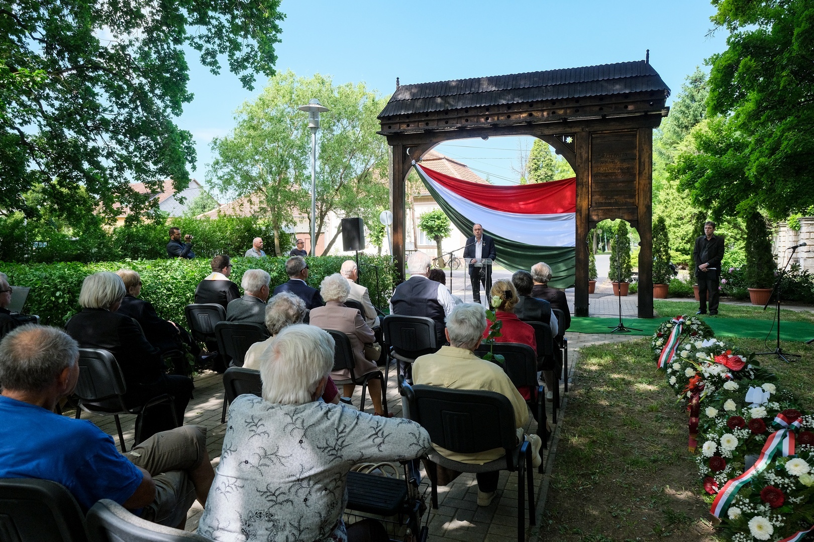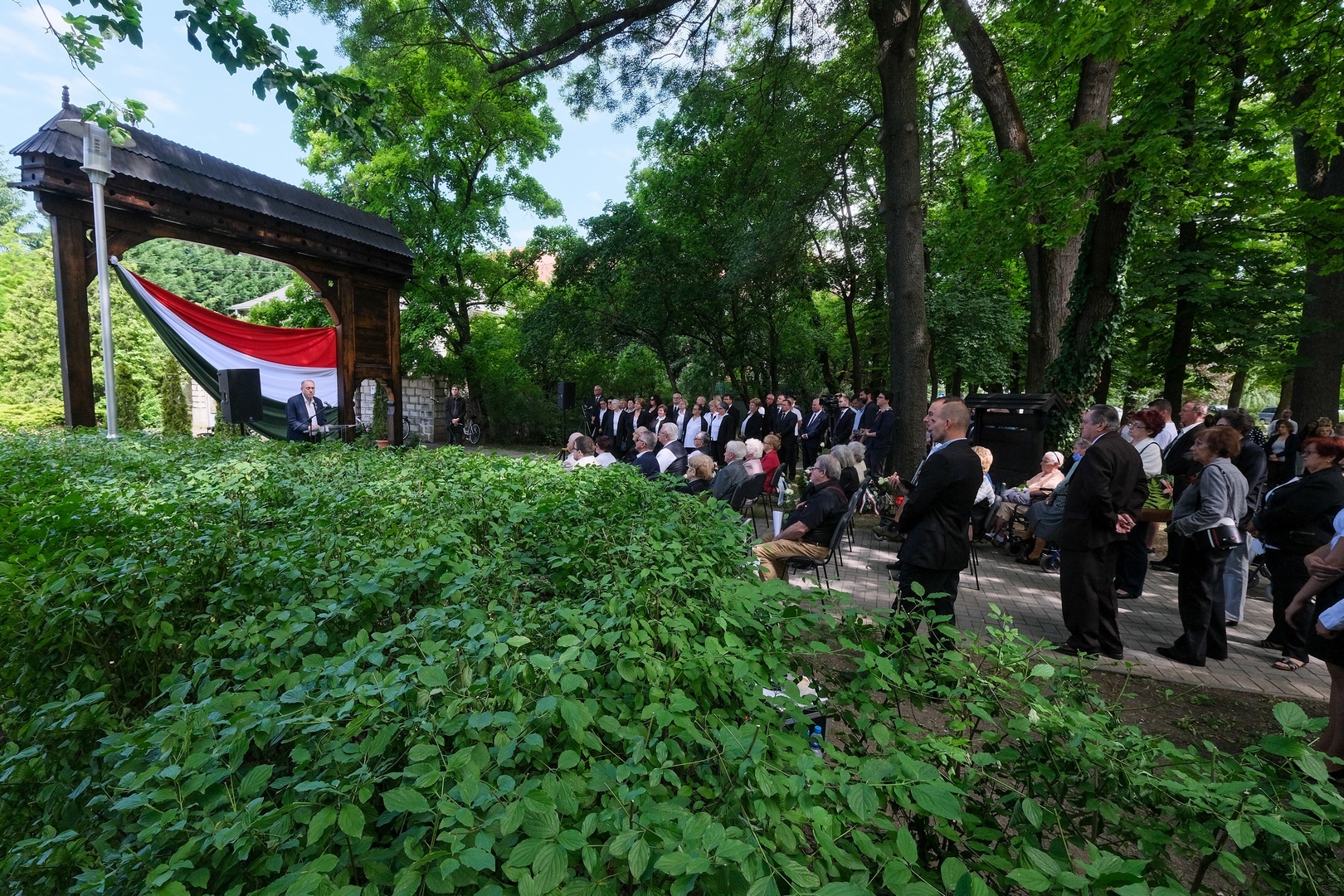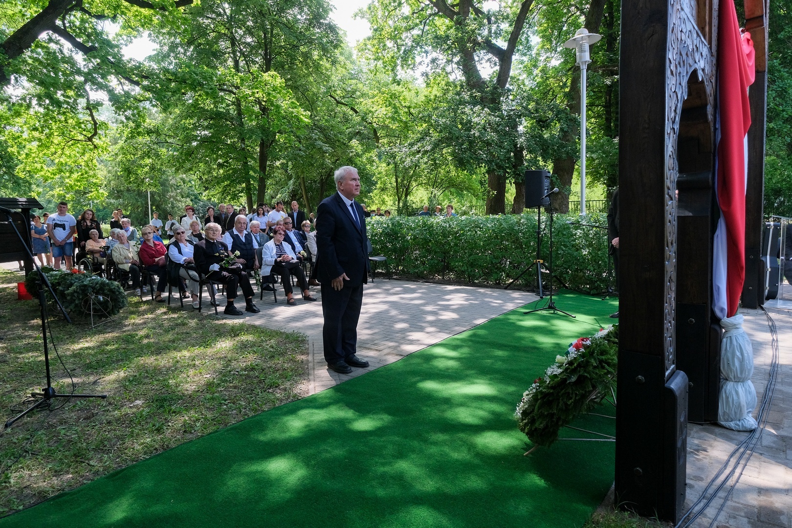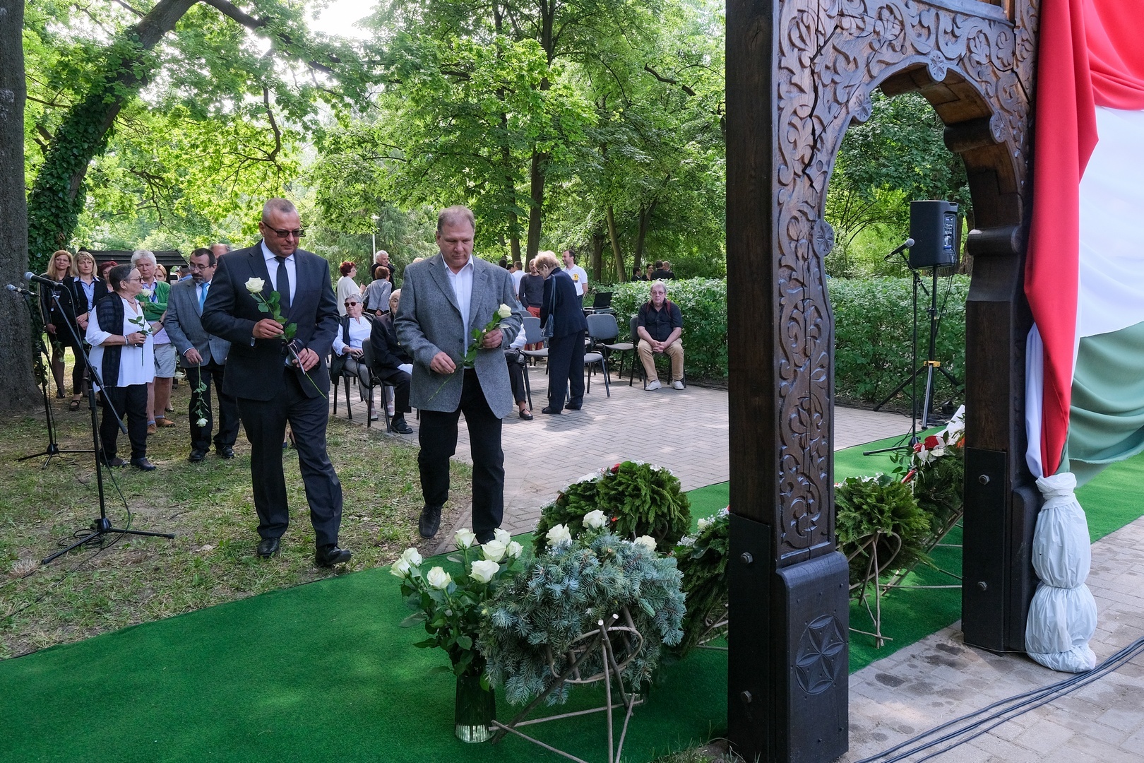 A nemzeti összetartozás napján Párducz László mondott beszédet a Csigakertben található székelykapu előtt