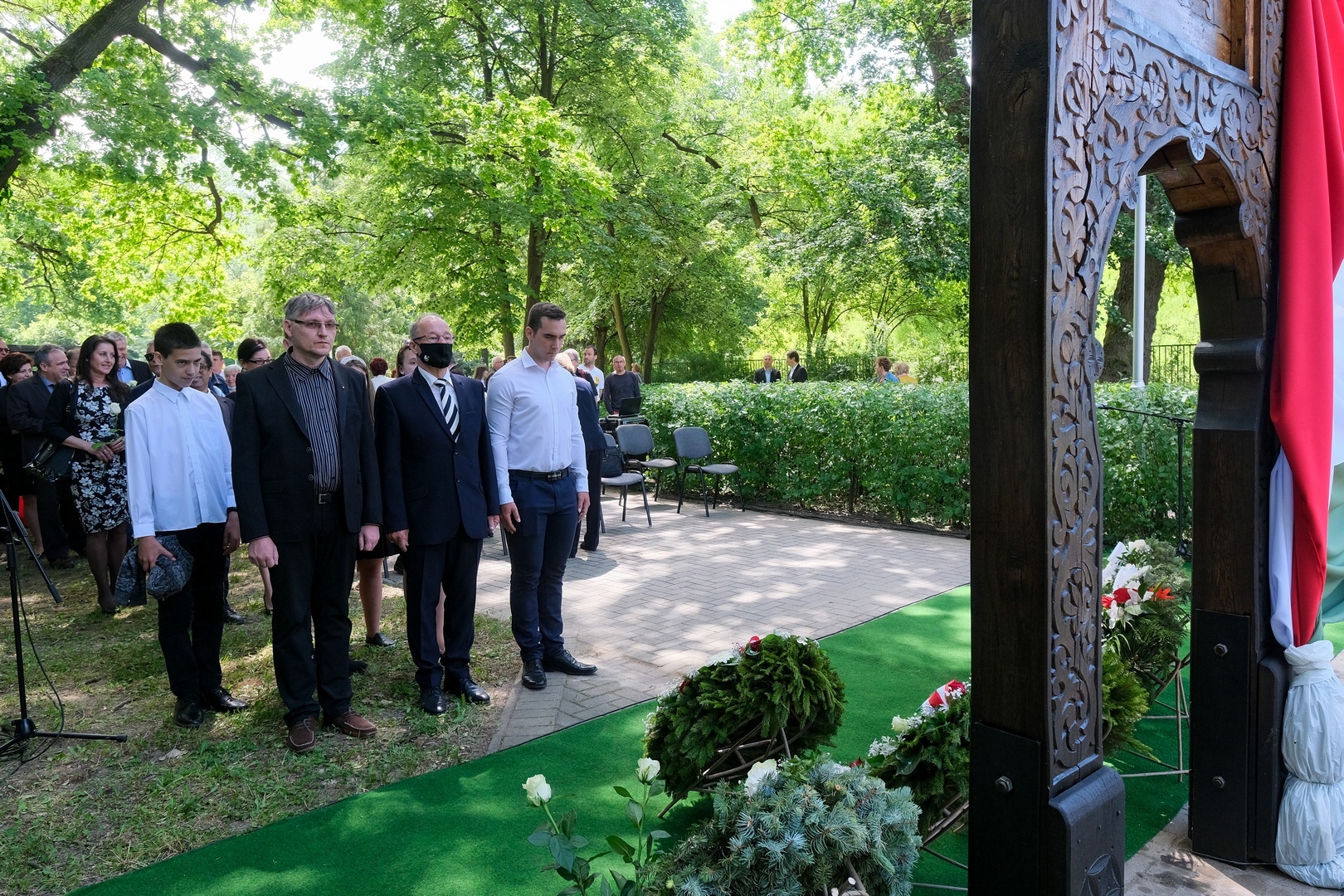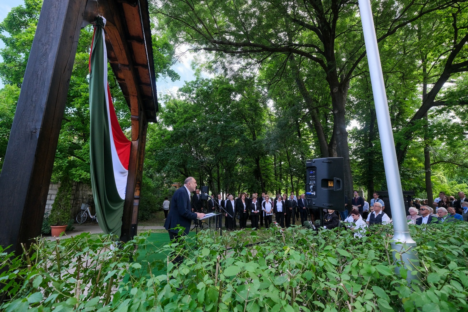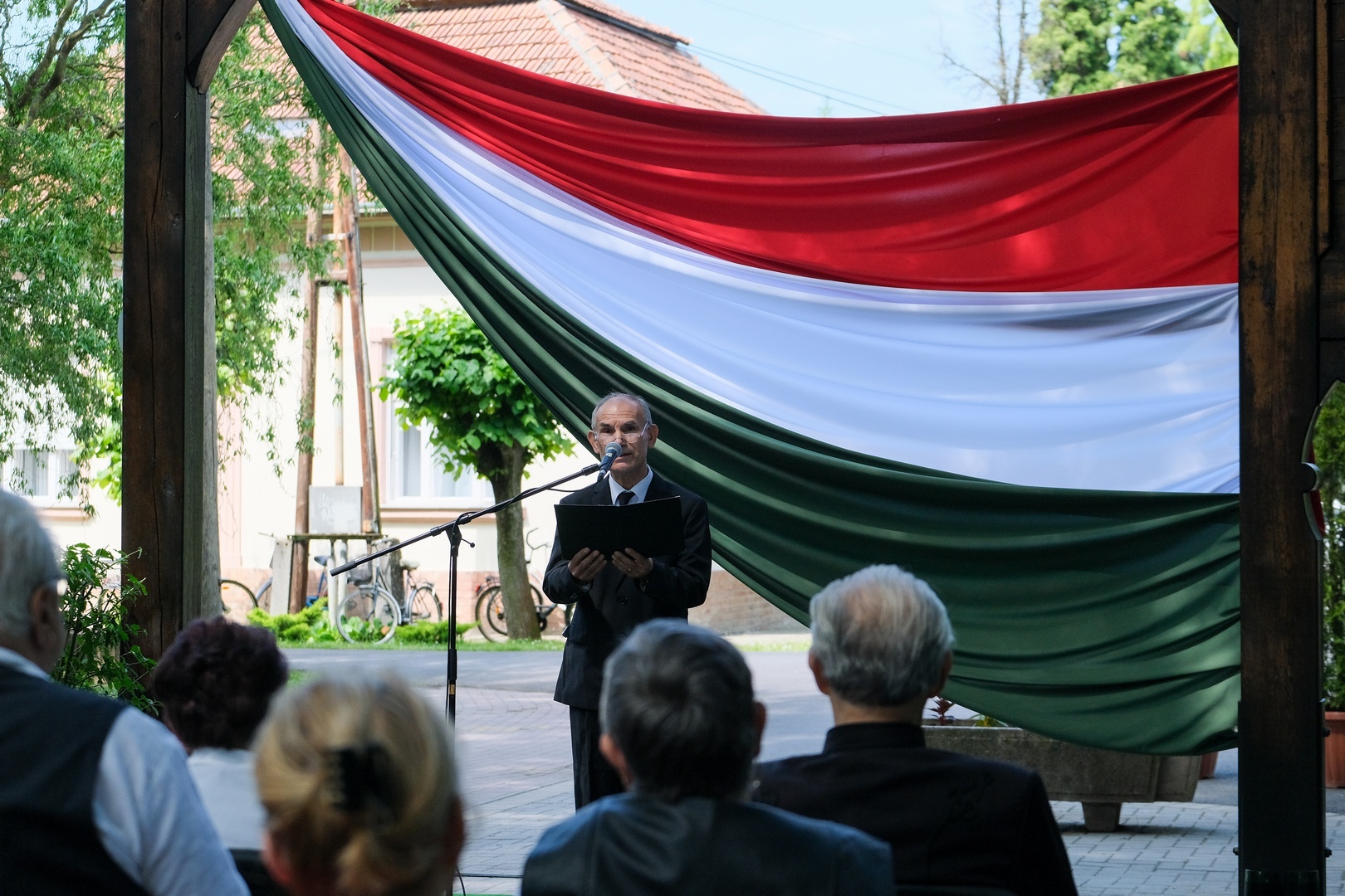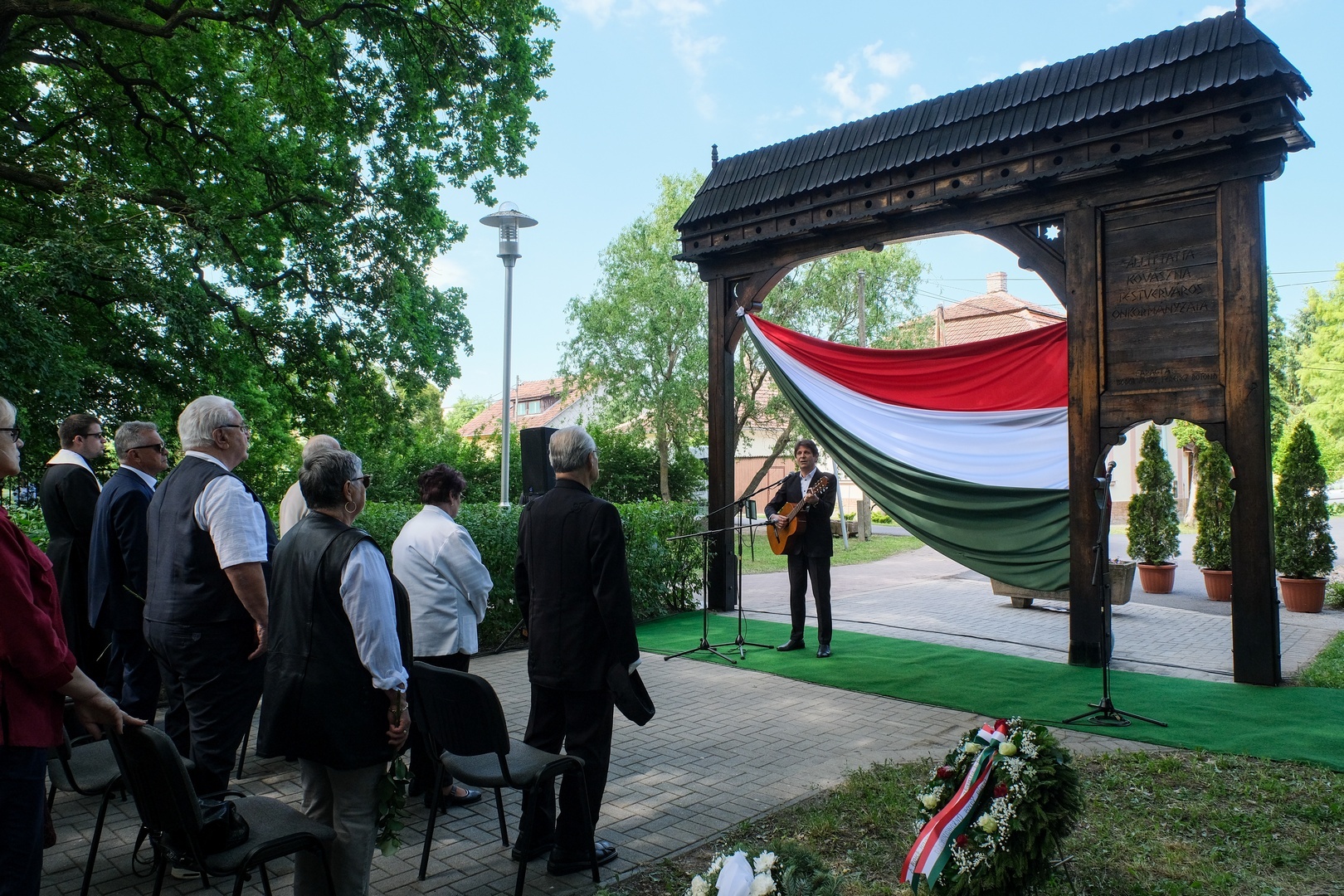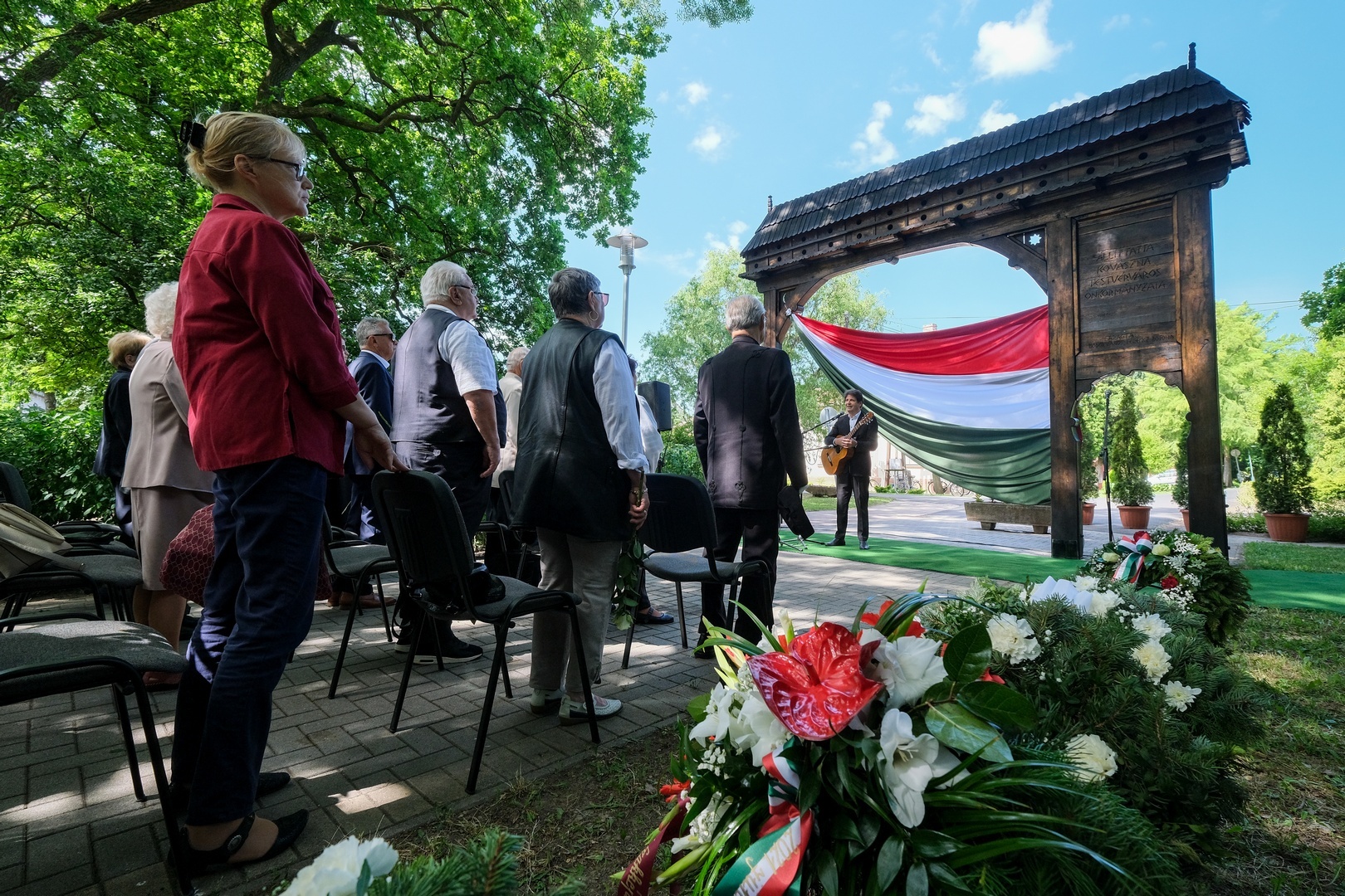 A nemzeti összetartozás napján Párducz László mondott beszédet a Csigakertben található székelykapu előtt
