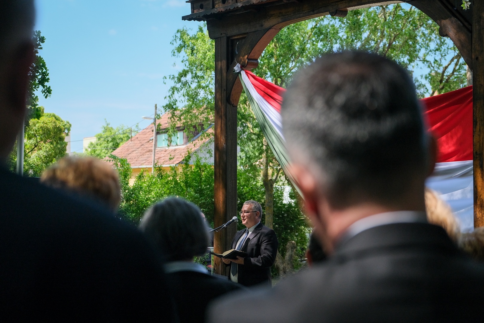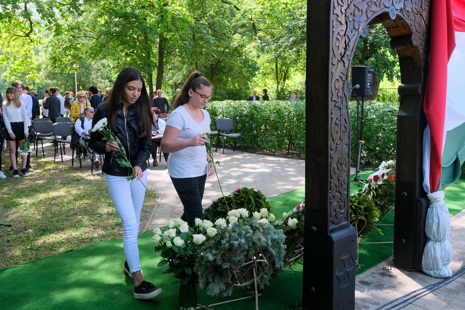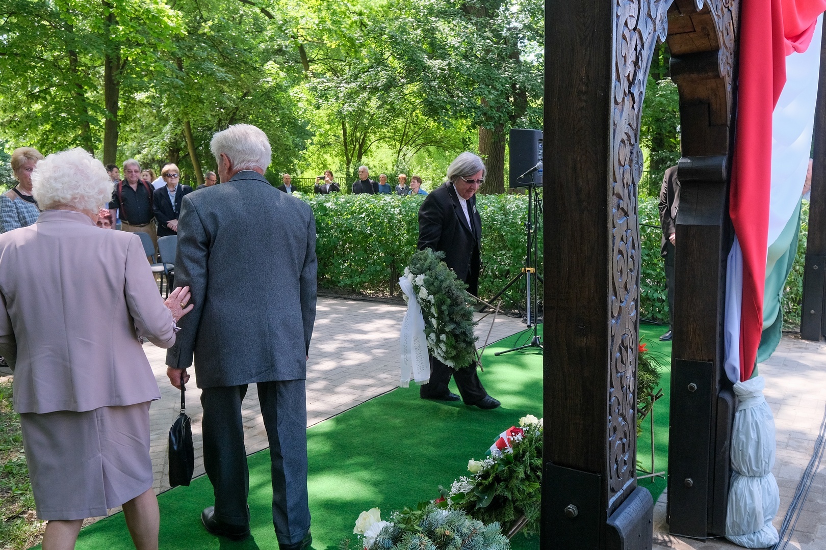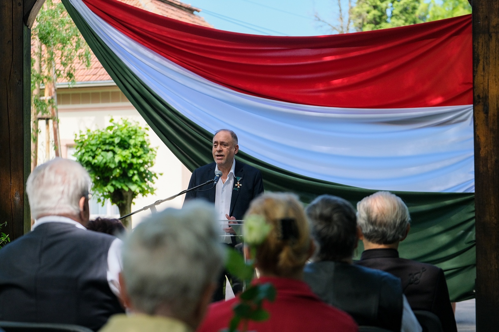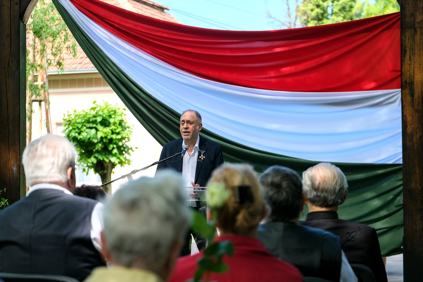 A nemzeti összetartozás napján Párducz László mondott beszédet a Csigakertben található székelykapu előtt
