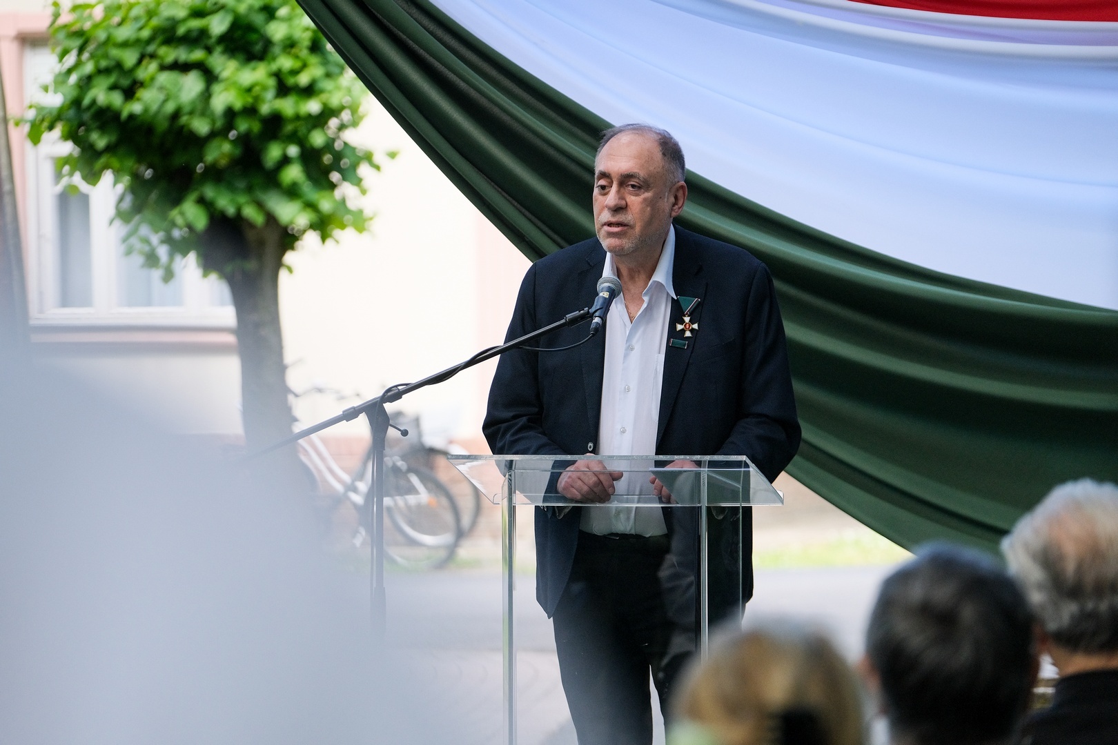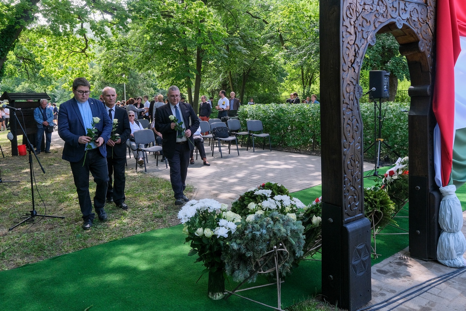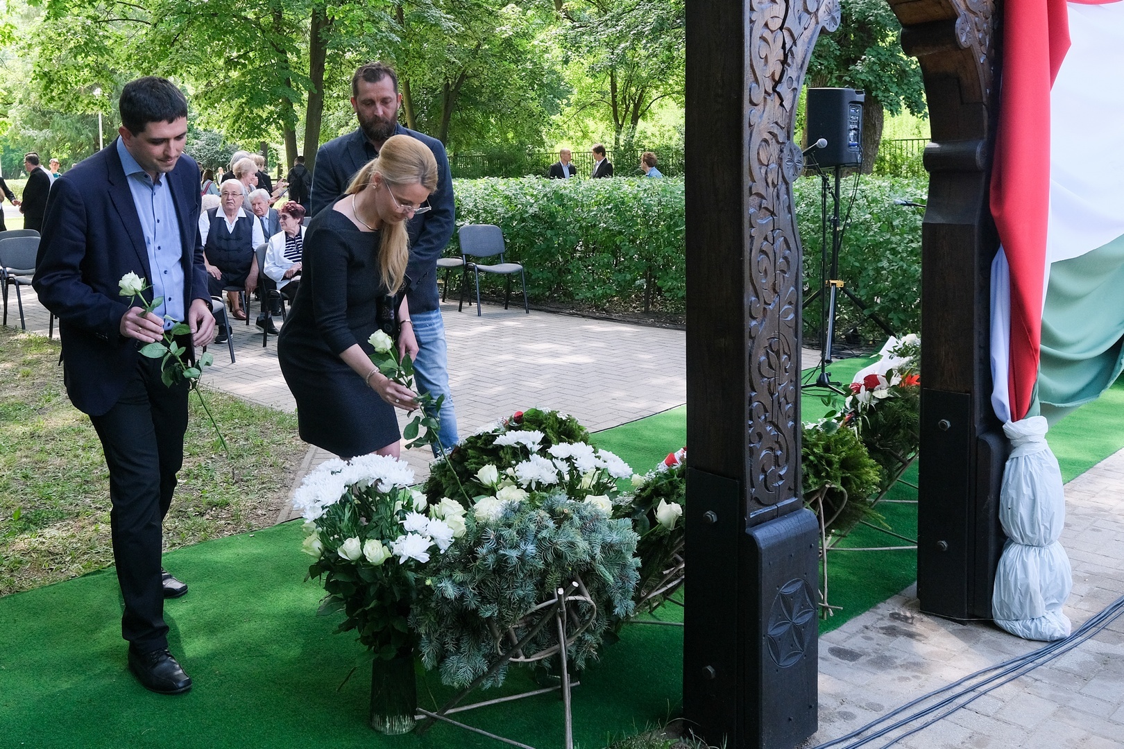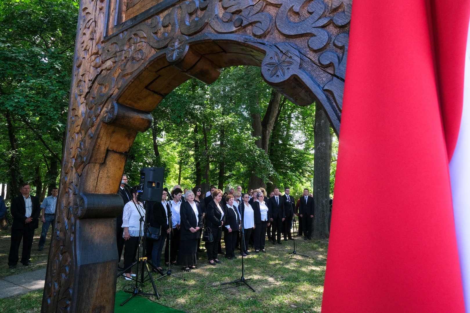 A nemzeti összetartozás napján Párducz László mondott beszédet a Csigakertben található székelykapu előtt