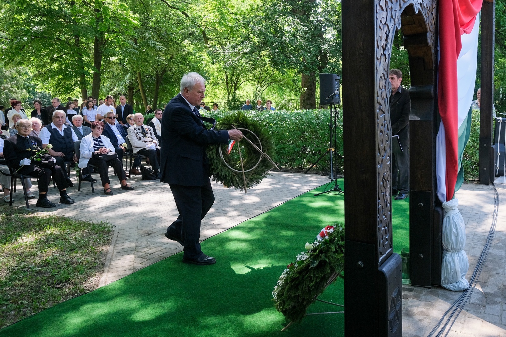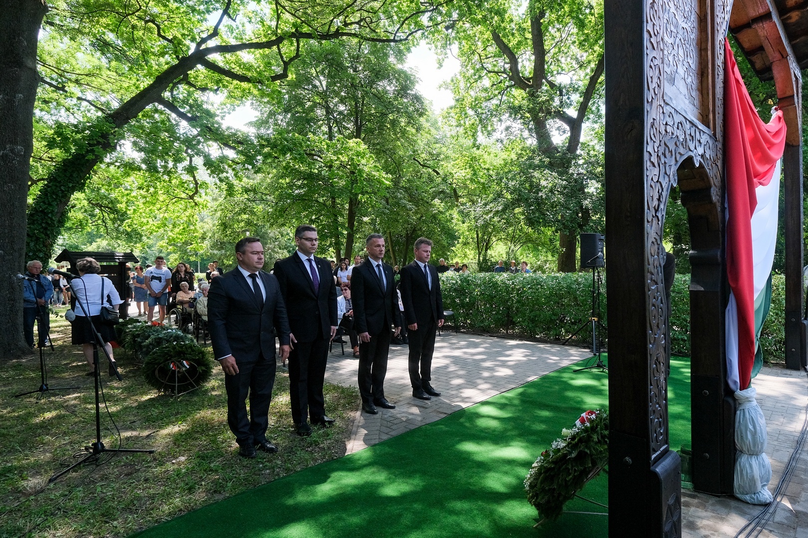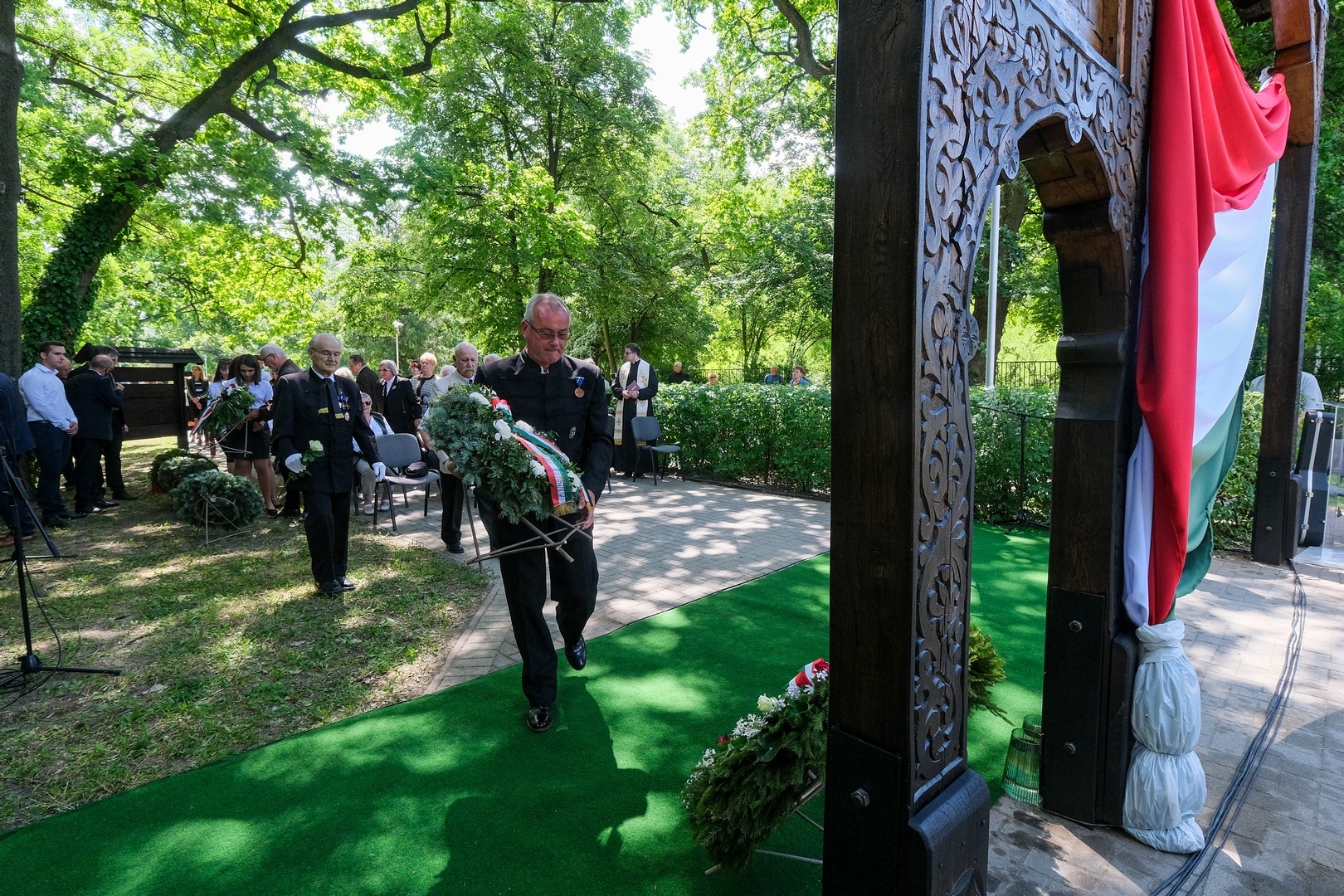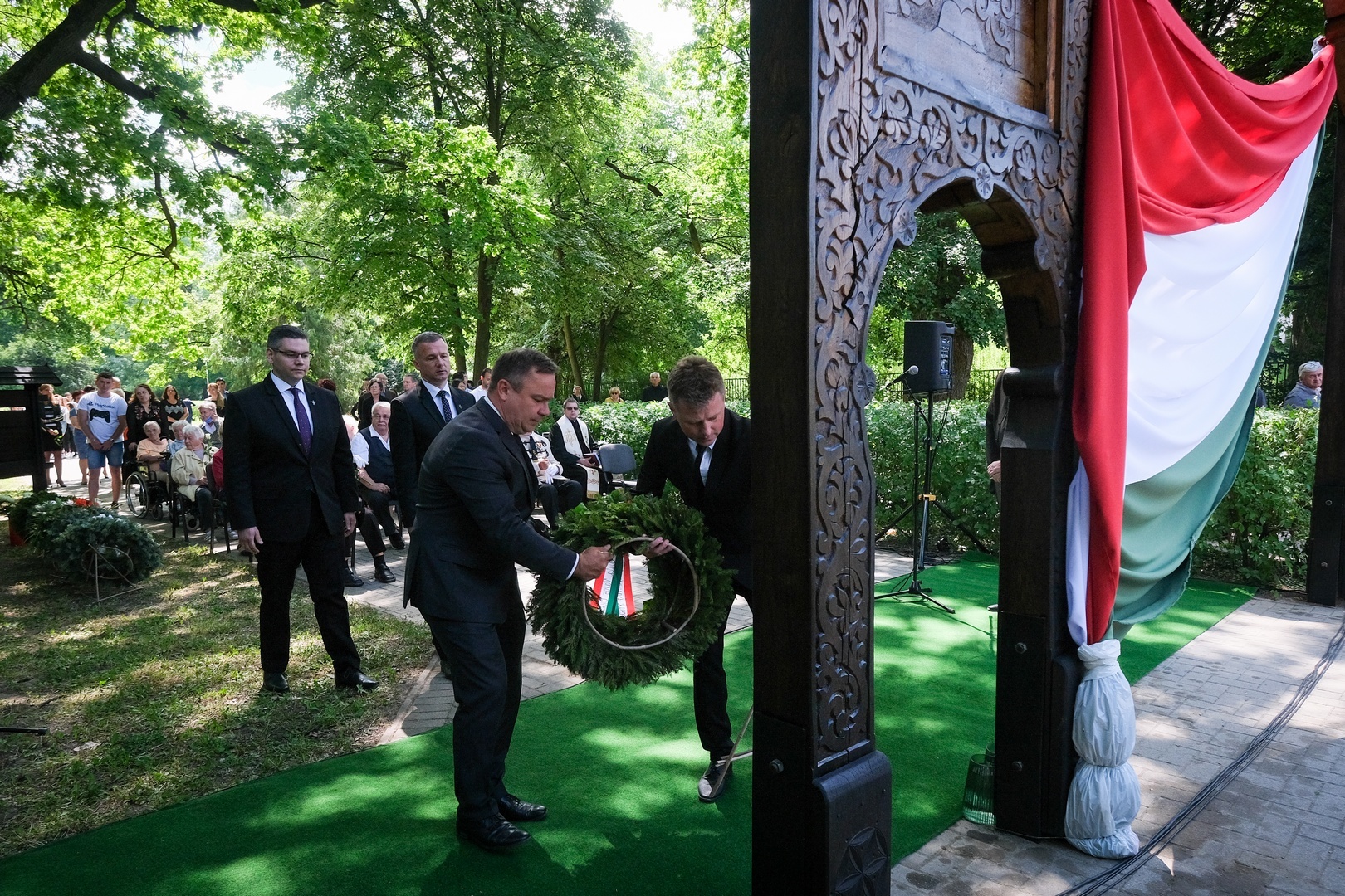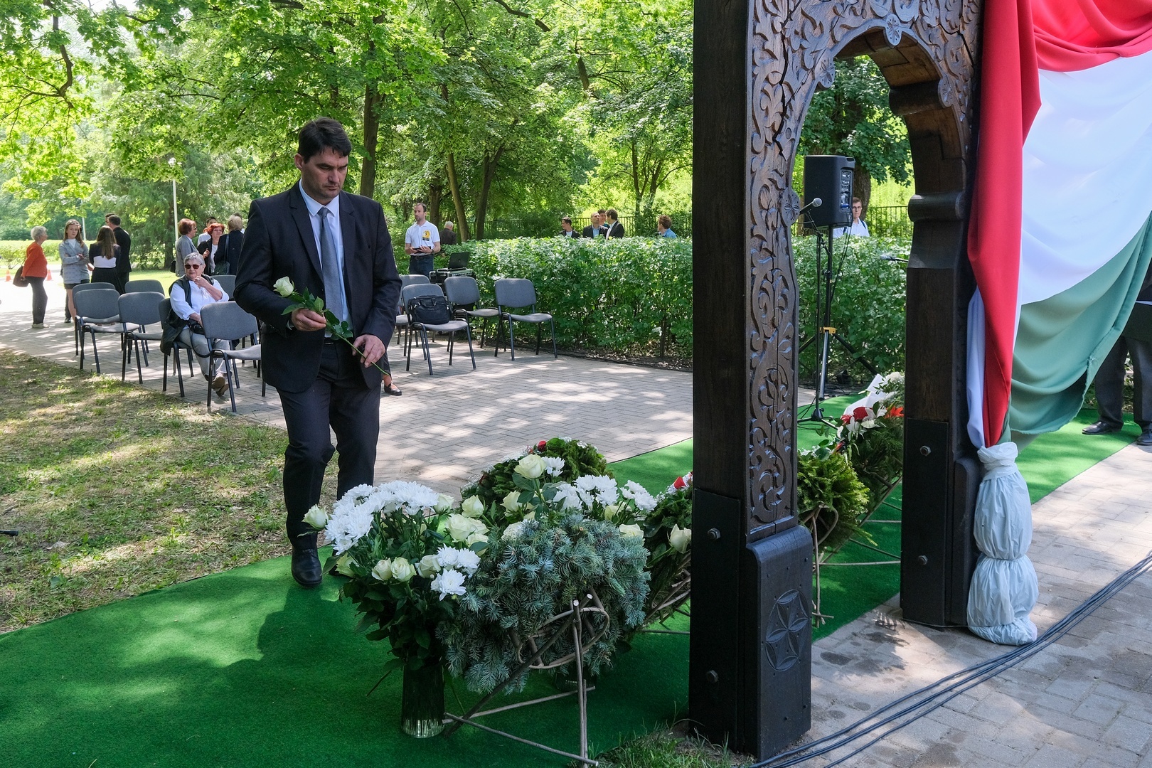 A nemzeti összetartozás napján Párducz László mondott beszédet a Csigakertben található székelykapu előtt