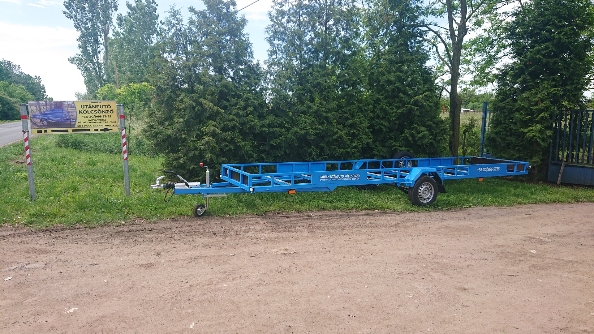 A Fábián utánfutó-kölcsönző az Eleki úton, a Szlányi tanya 11671 hrsz.-on található. A telephely a hét minden napján reggel 7-től 19 óráig tart nyitva. Az utánfutókat előre is le lehet foglalni a 06-30/966-5725-ös telefonszámon.