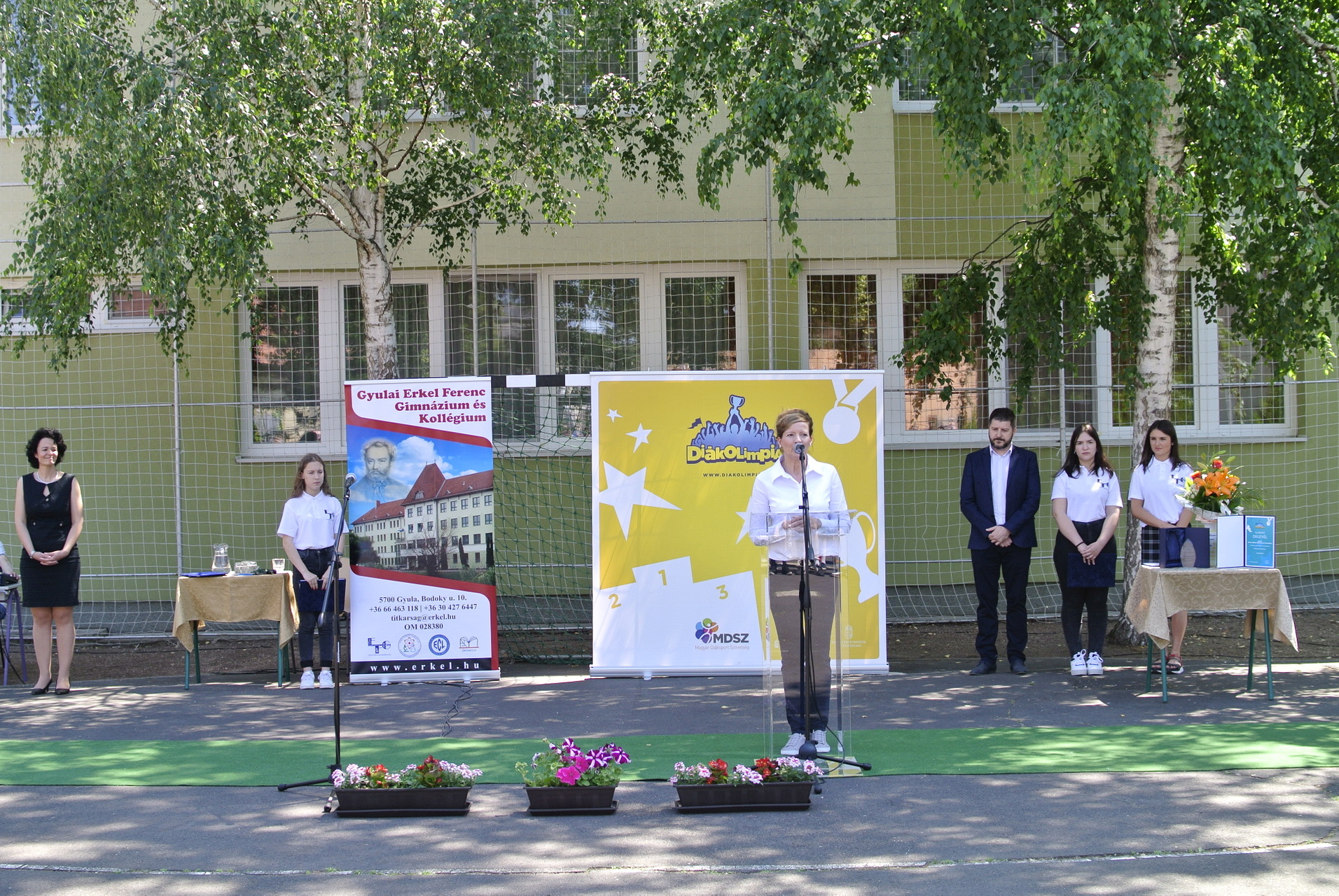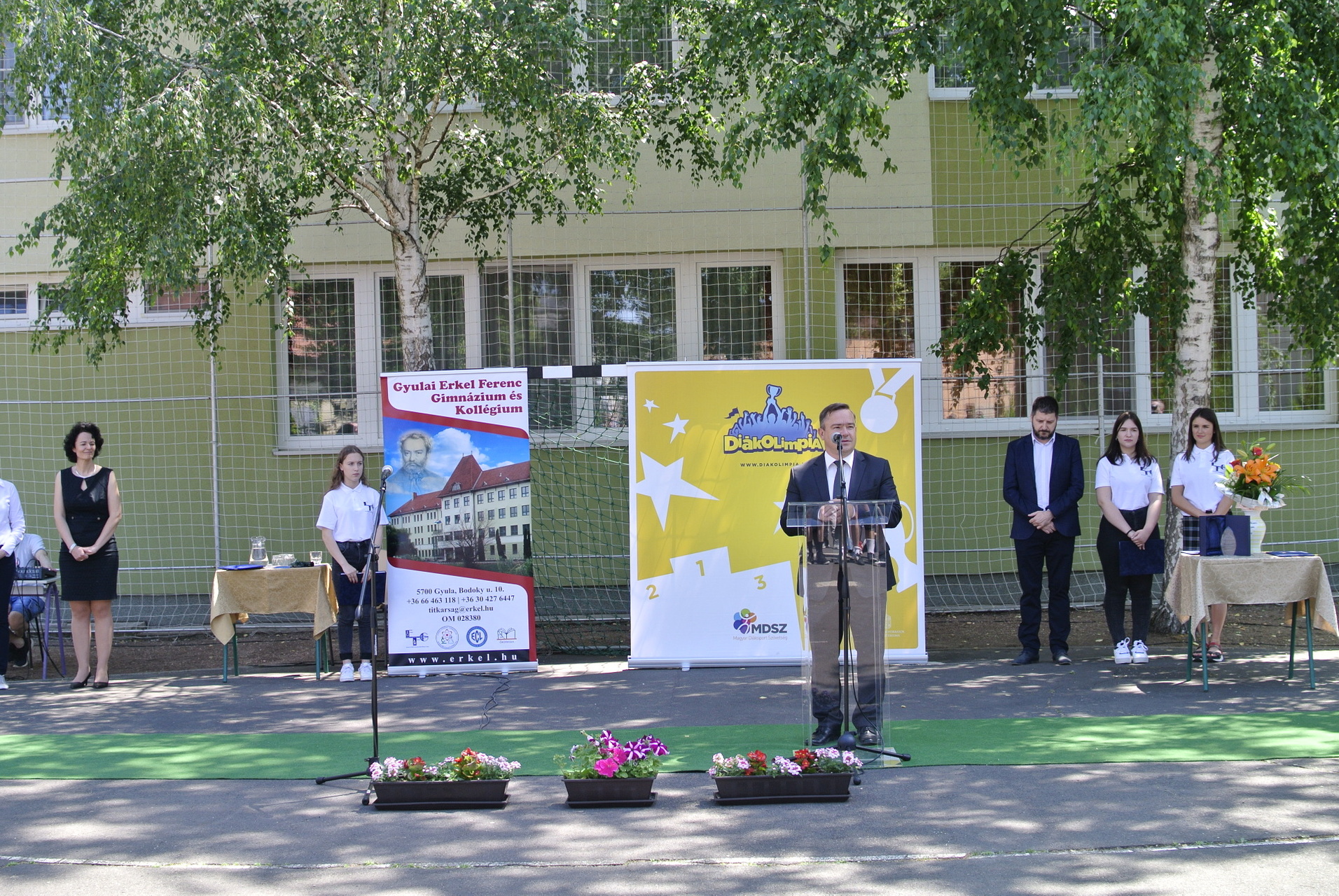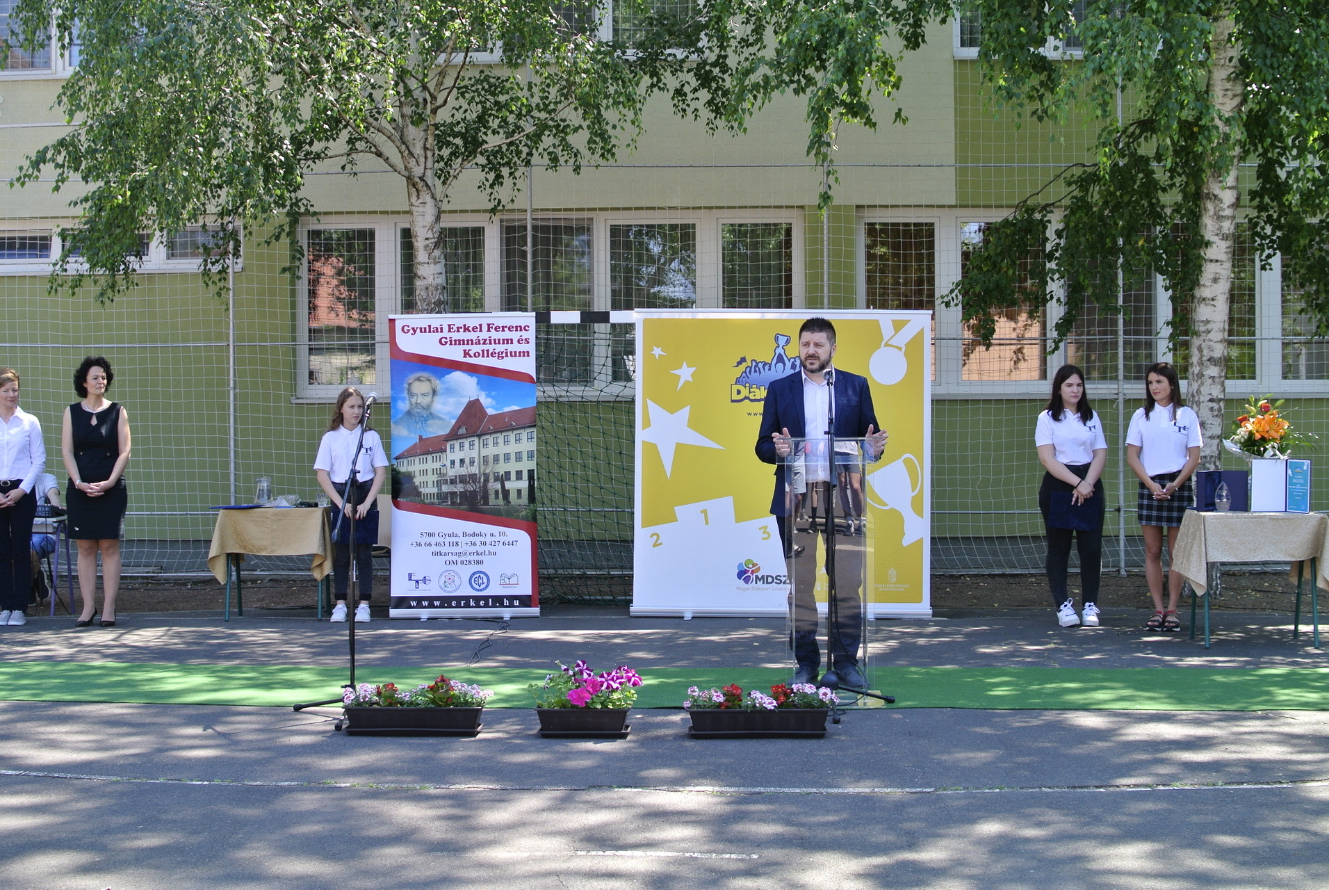 A díjátadón Vincze József, a Magyar Diáksport Szövetség Dél-alföldi regionális irodájának vezetője, Teleki-Szávai Krisztina, a Gyulai Tankerületi Központ vezetője, Kónya István alpolgármester és Zámori Ida intézményvezető mondtak beszédet.