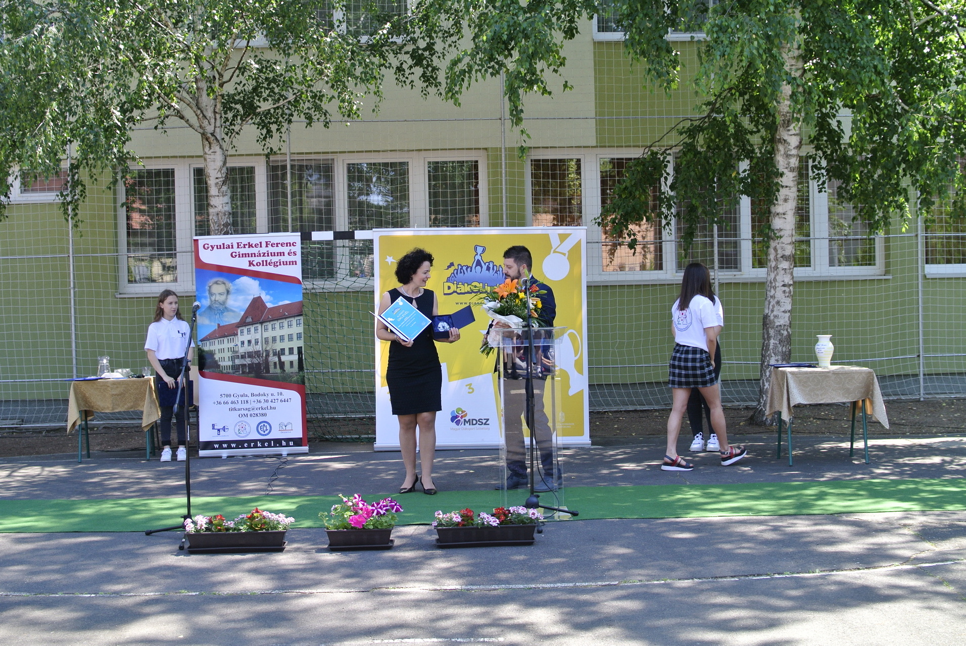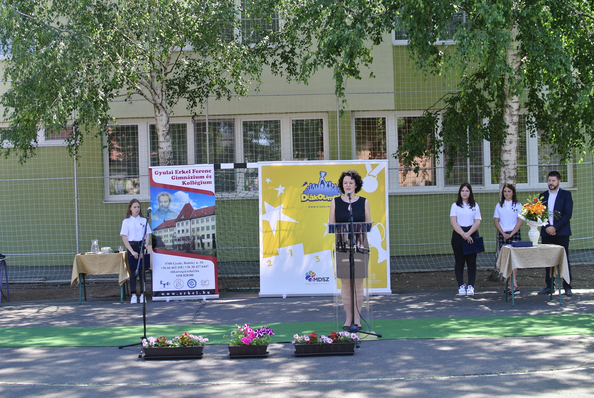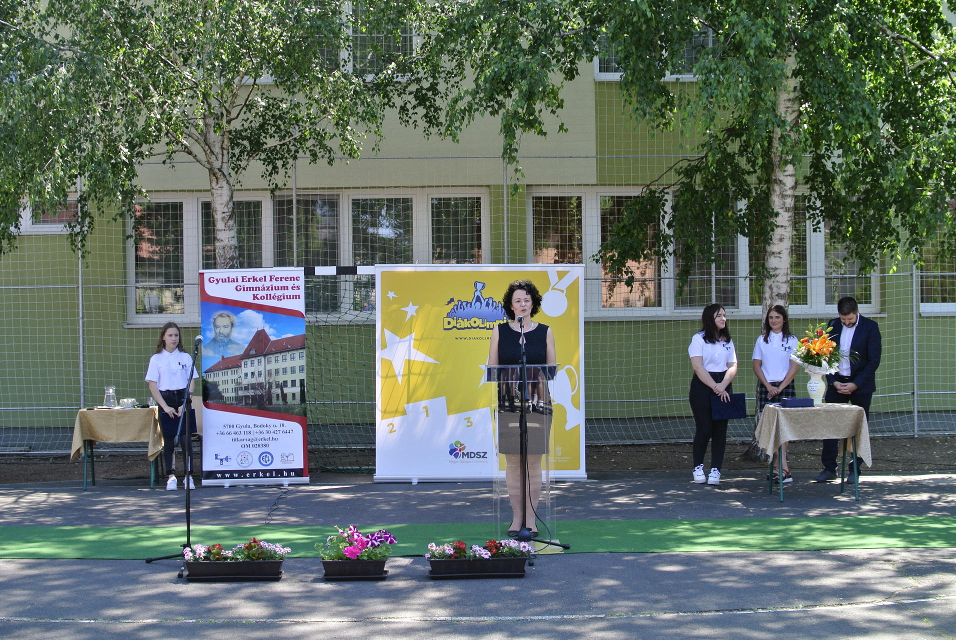 A díjátadón Vincze József, a Magyar Diáksport Szövetség Dél-alföldi regionális irodájának vezetője, Teleki-Szávai Krisztina, a Gyulai Tankerületi Központ vezetője, Kónya István alpolgármester és Zámori Ida intézményvezető mondtak beszédet.