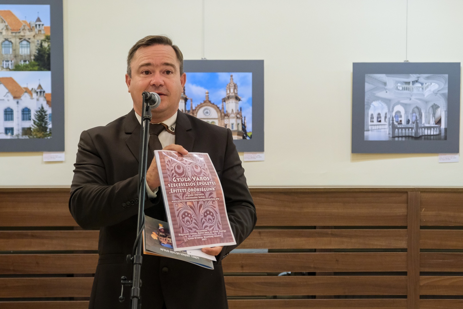 Példaértékű az a munka, amit Bagyinszki Zoltán a szecesszió népszerűsítése érdekében végez – fogalmazott Kónya István alpolgármester a fotográfus Erkel Ferenc Művelődési Központban rendezett kiállításának június 11-i megnyitóján.