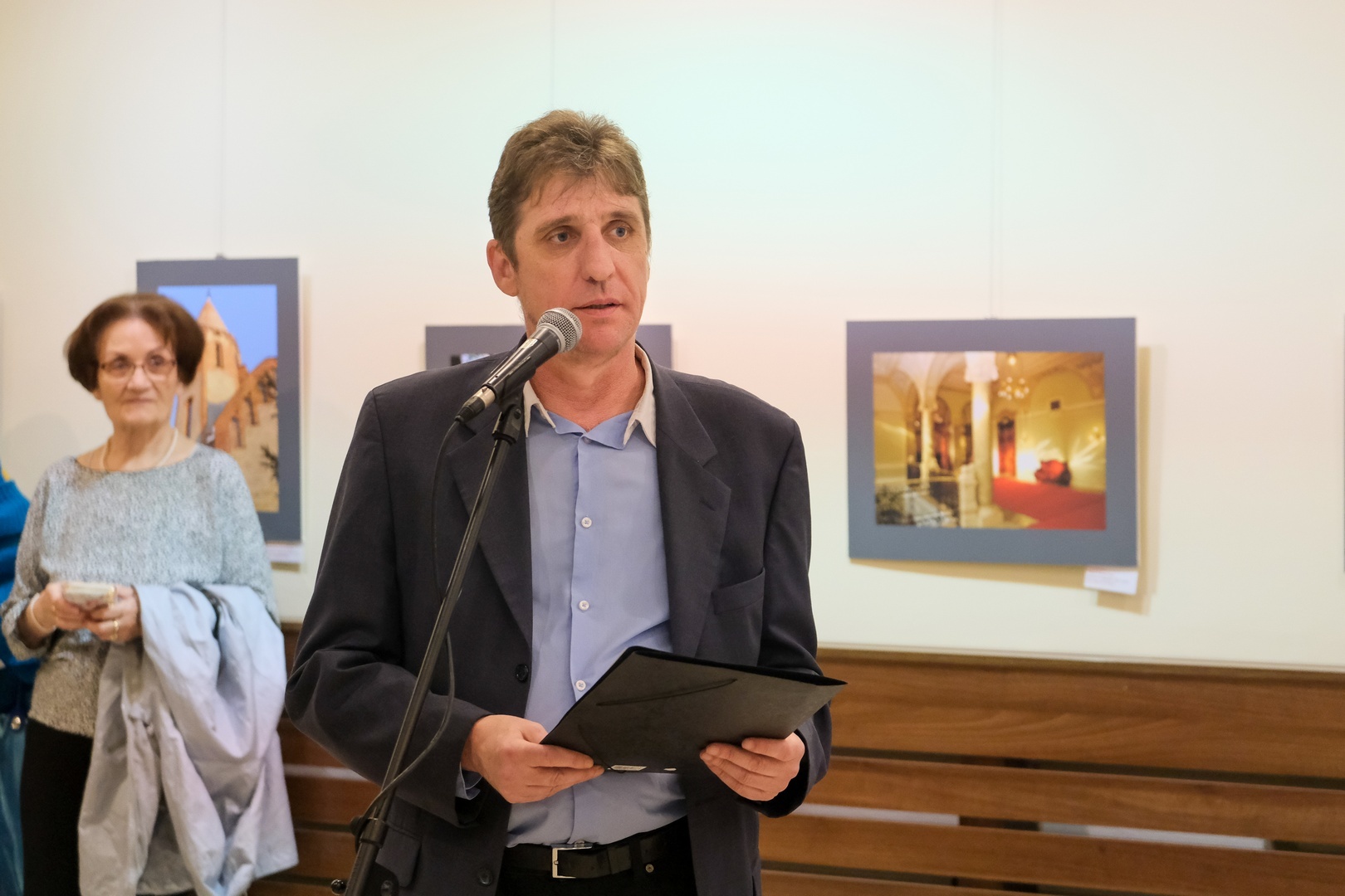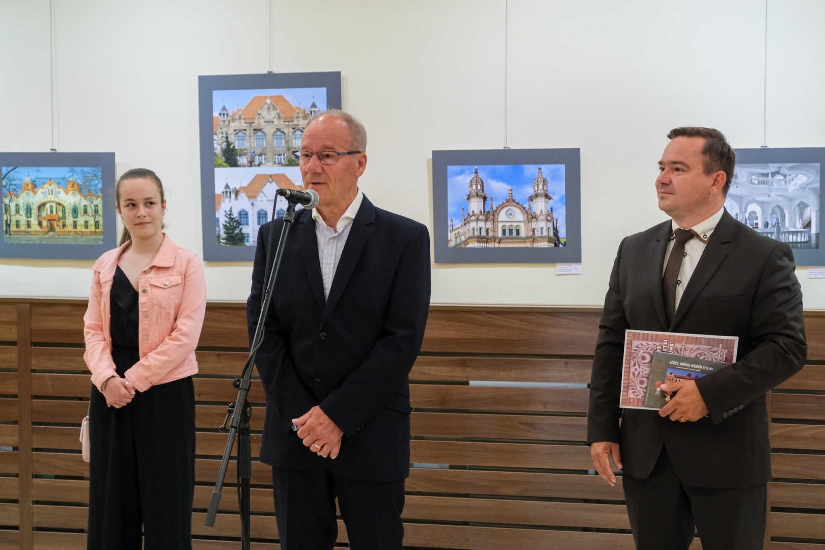 Kónya István megnyitóbeszédében kiemelte: a fotográfus az egész Kárpát-medencét bejárta, hogy megörökítse a szecessziós épületeket.
