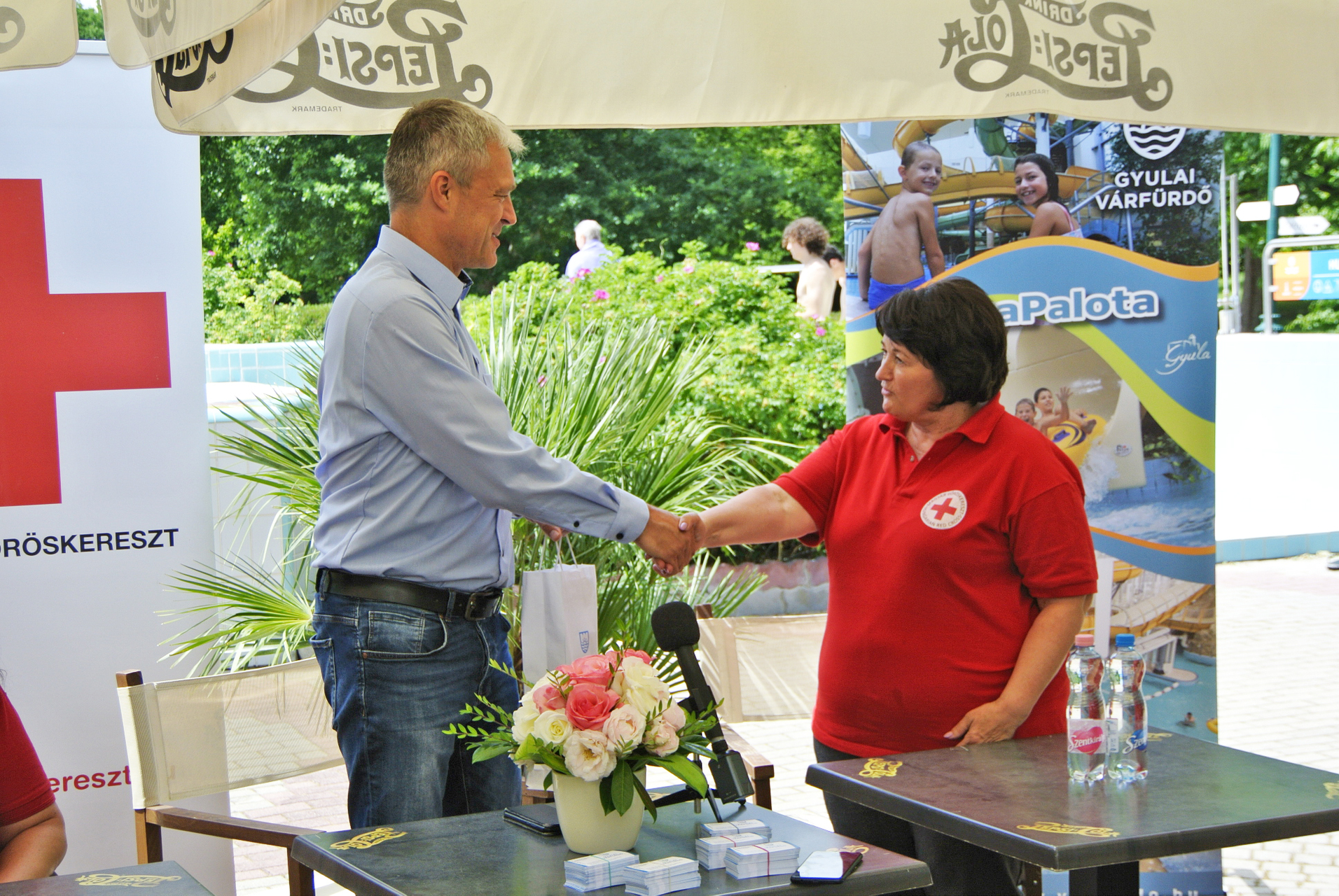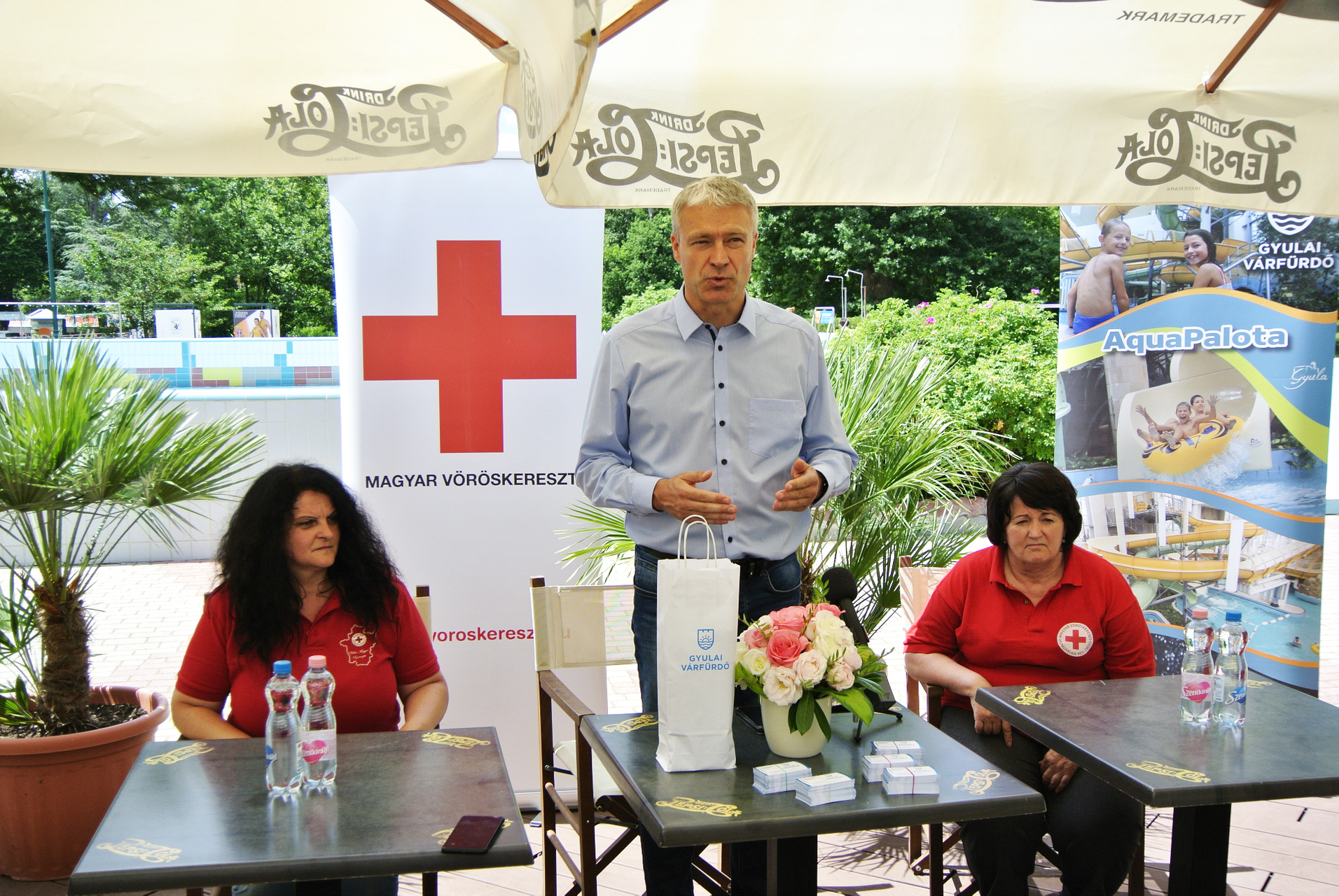 Kétezer belépővel támogatja az önkéntes véradókat a Gyulai Várfürdő – jelentette be június 15-én Kun Miklós ügyvezető. A jegyeket Tóth Zoltánnénak, a Magyar Vöröskereszt Békés Megyei Szervezetének igazgatója és Krizsán Margit, a Magyar Vöröskereszt Gyulai Területi Szervezetének vezetője vették át.