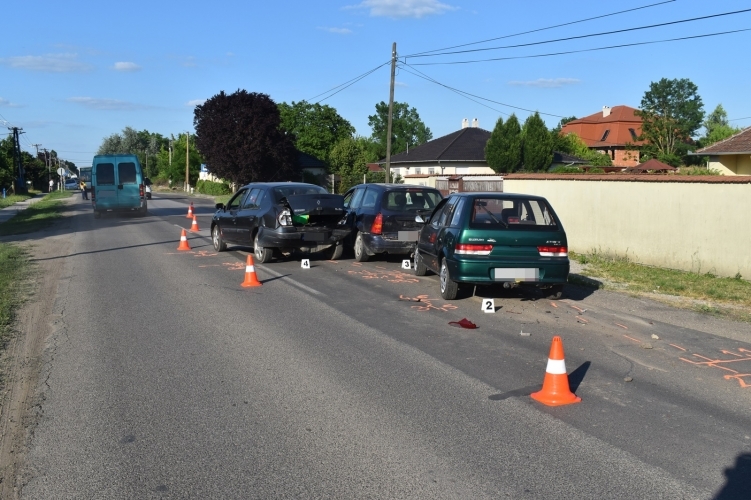 Négy személygépkocsi csúszott egymásba Békéscsabán, a Dobozi úton. A balesetben hatan könnyebben megsérültek.