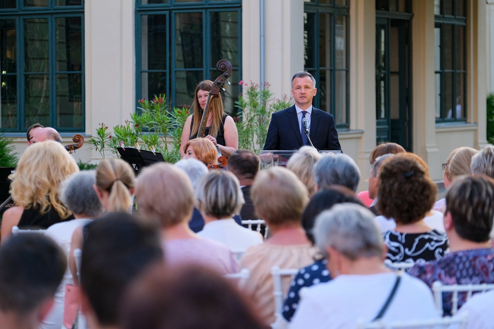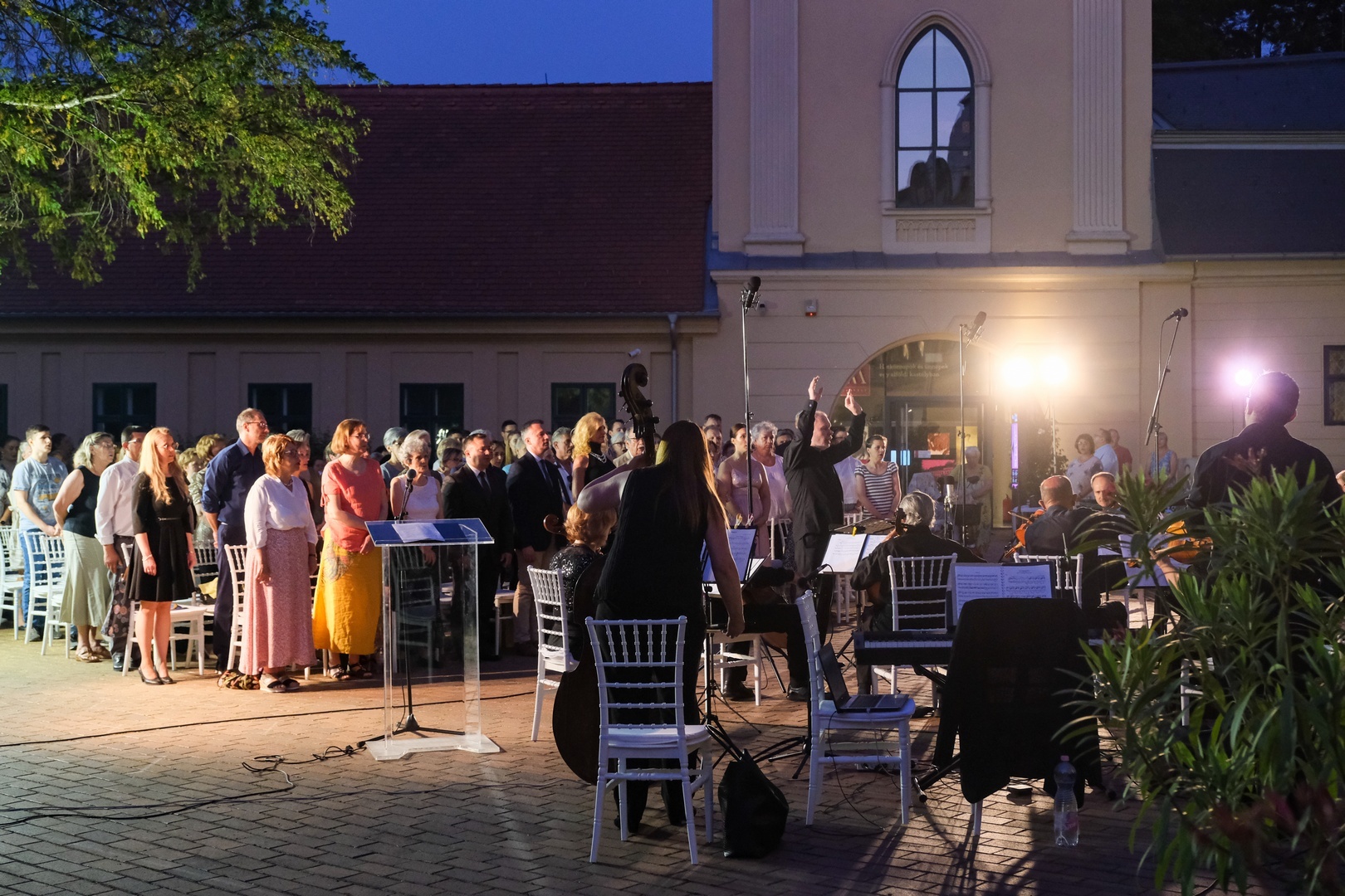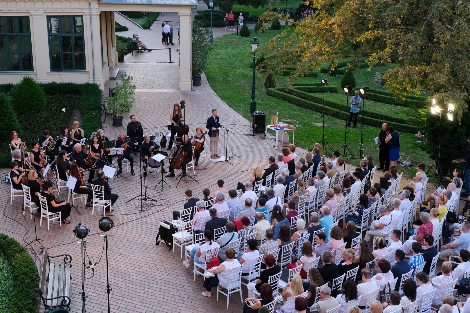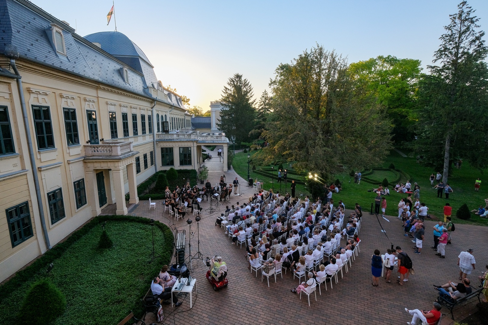 Az Almásy-kastély parkjában rendezett koncerten Mozart, Vivaldi, Haydn, Telemann, Massenet, Mascagni és Erkel művei hangzottak el Somogyváry Ákos karnagy vezényletével. Közreműködött Gál Csaba zongoraművész, a Békés Megyei Szimfonikus Zenekar és az Erkel Ferenc Vegyeskar.
