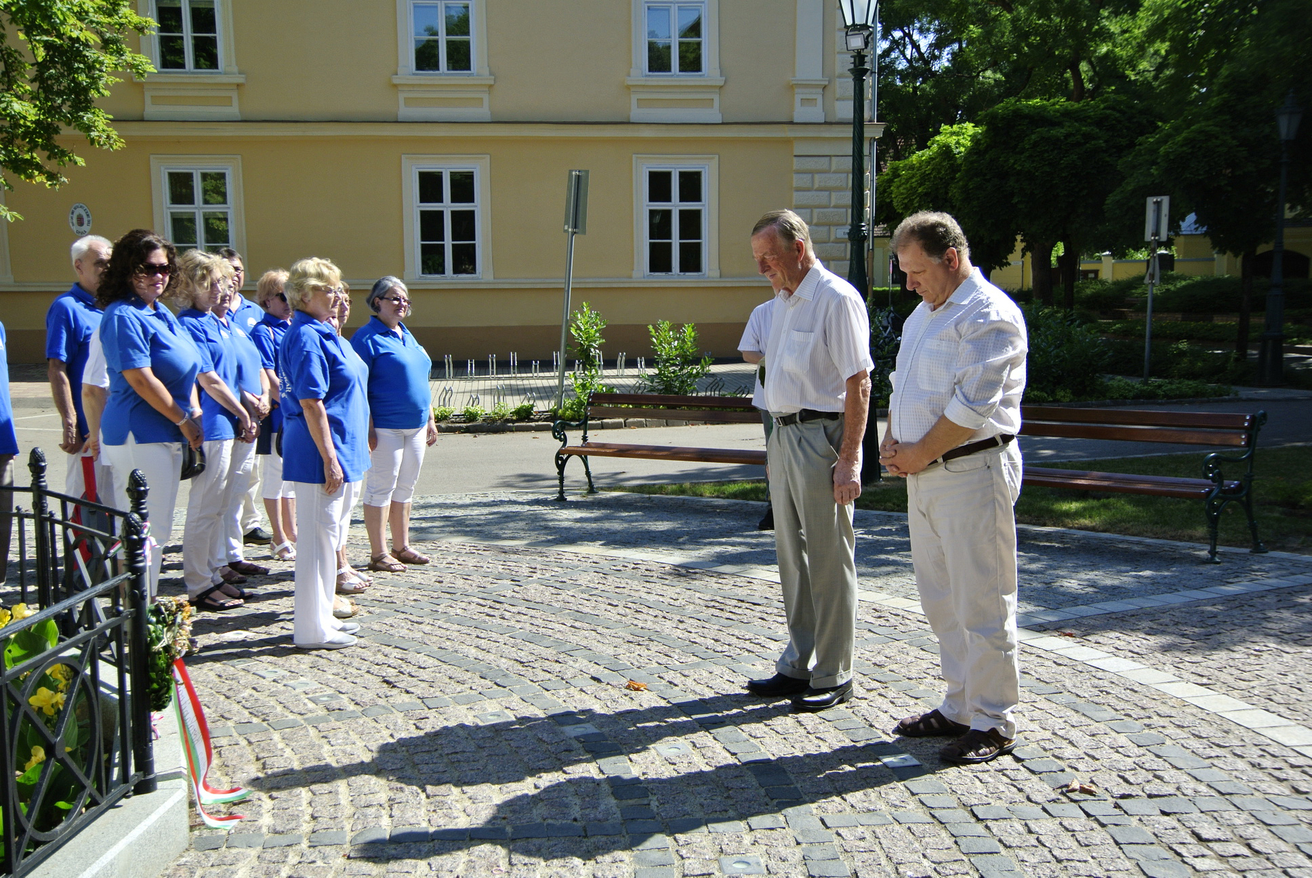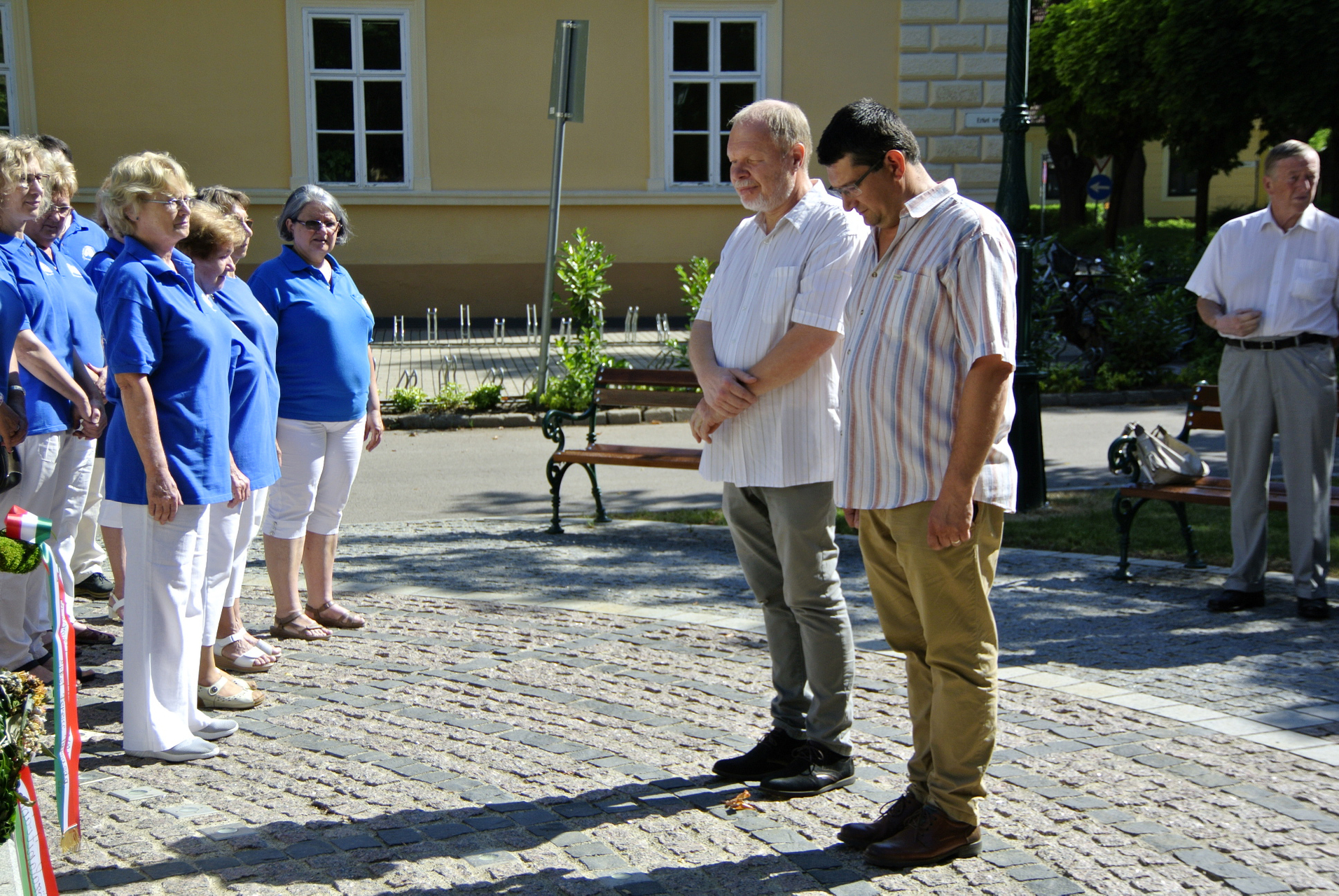 A megemlékezésen a Gyulai Erkel Ferenc Vegyeskar énekelte el a Himnuszt, majd Béres István, Pocsay Gábor, a Wenckheim Krisztina Közalapítvány elnöke, Somogyváry Ákos, az Erkel Ferenc Társaság elnöke, valamint Dézsi János, a társaság alelnöke helyeztek el koszorúkat a szobornál.