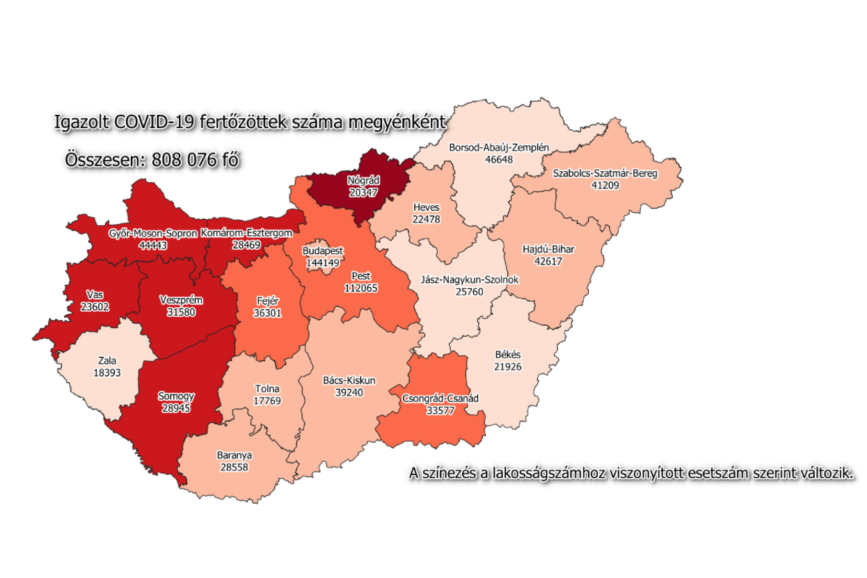 A kormányzati portálon azt írták: 808 076-ra nőtt a Magyarországon azonosított fertőzöttek száma. Az elhunytaké 29 991-re, a gyógyultaké 738 542-re emelkedett.