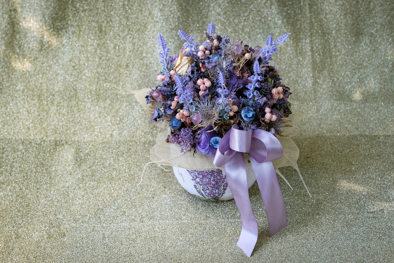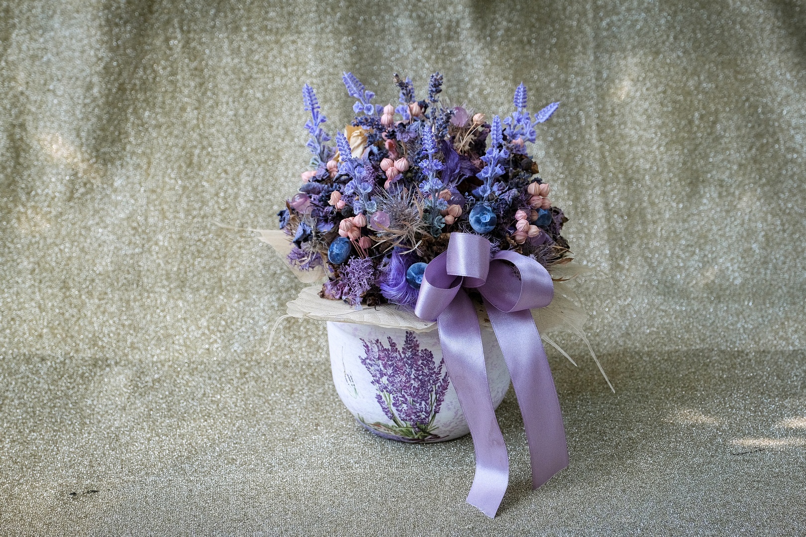 A virágkompozíciók készen is kaphatók, de megrendelésre is készítenek díszeket. Emellett levendulás csészéket, kerámiákat és kiegészítőket is árulnak az üzletben.