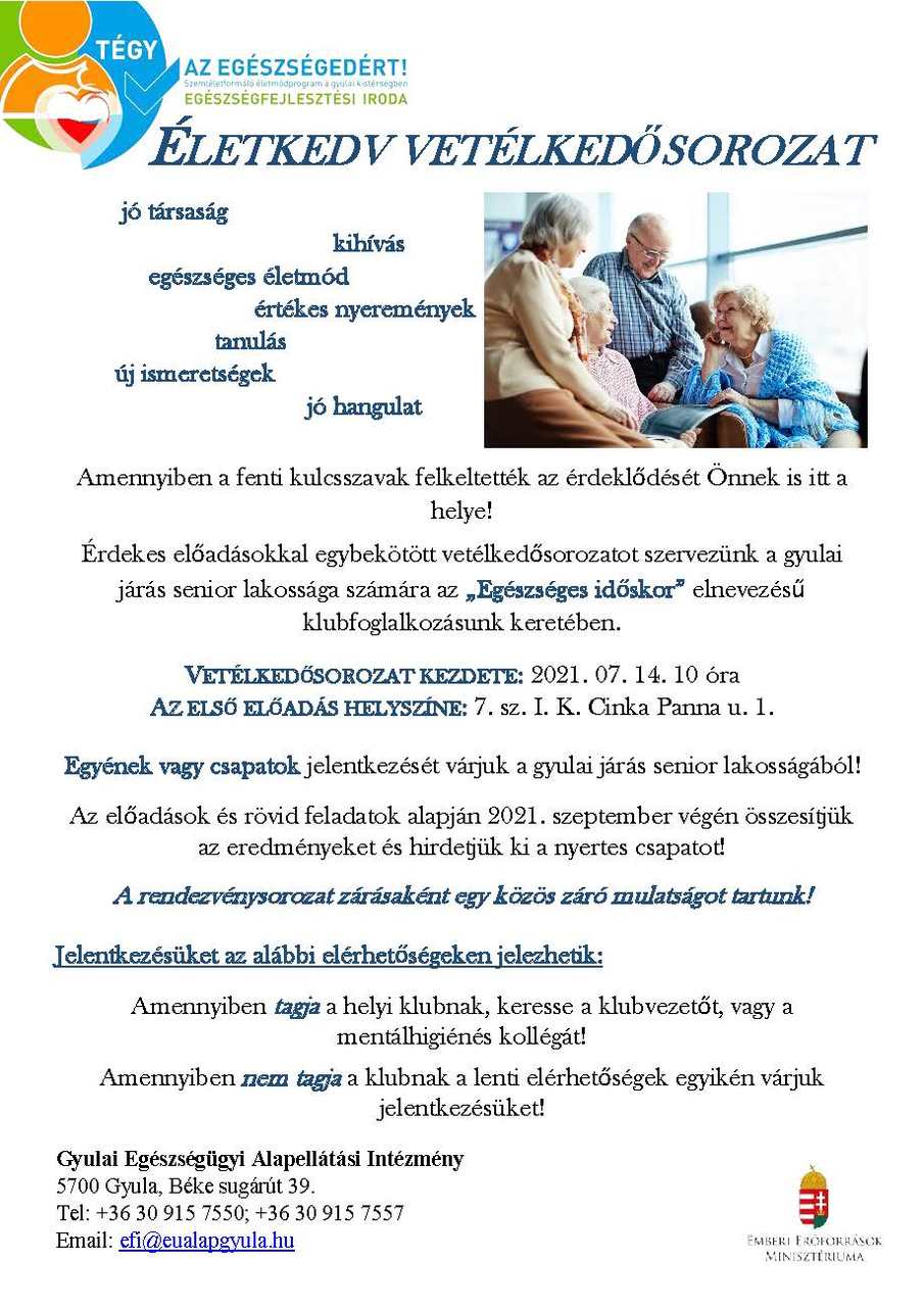 Előadásokkal egybekötött vetélkedősorozatot indít a gyulai Egészségfejlesztési Iroda. Az Egészséges időskor elnevezésű klubfoglalkozásokra egyéni és csoportos jelentkezéseket várnak.