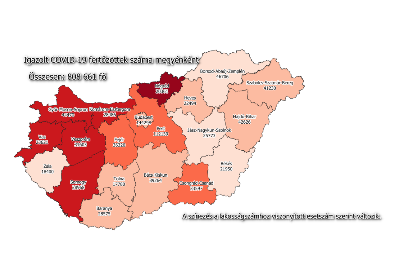 A kormányzati portálon azt írták: 808 661-re nőtt a Magyarországon azonosított fertőzöttek száma. Az elhunytak száma 30 013. A gyógyultaké 742 270-re emelkedett.