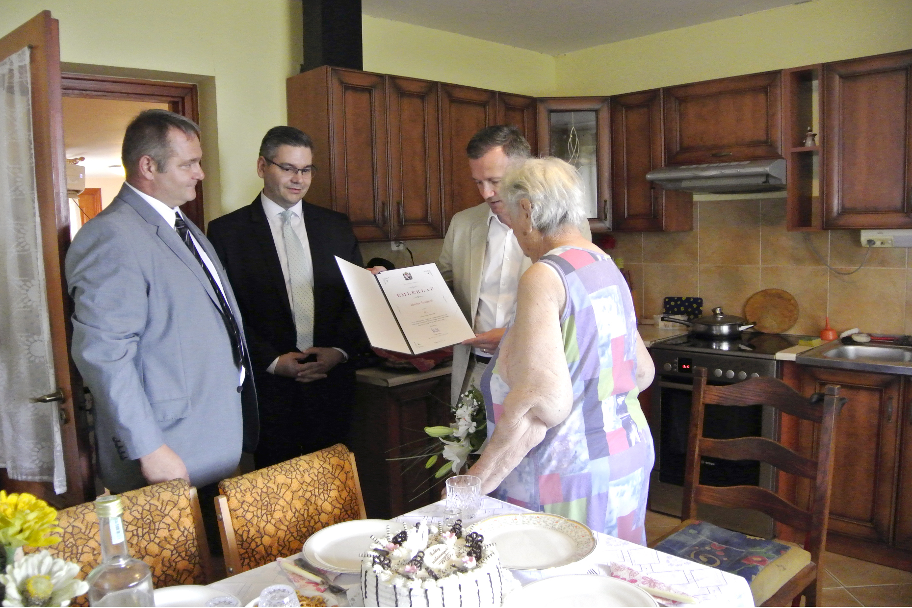Kilencvenedik születésnapja alkalmából köszöntötte Jámbor Istvánnét július 20-án Görgényi Ernő polgármester, Csige Gábor jegyző és Veres András önkormányzati képviselő.