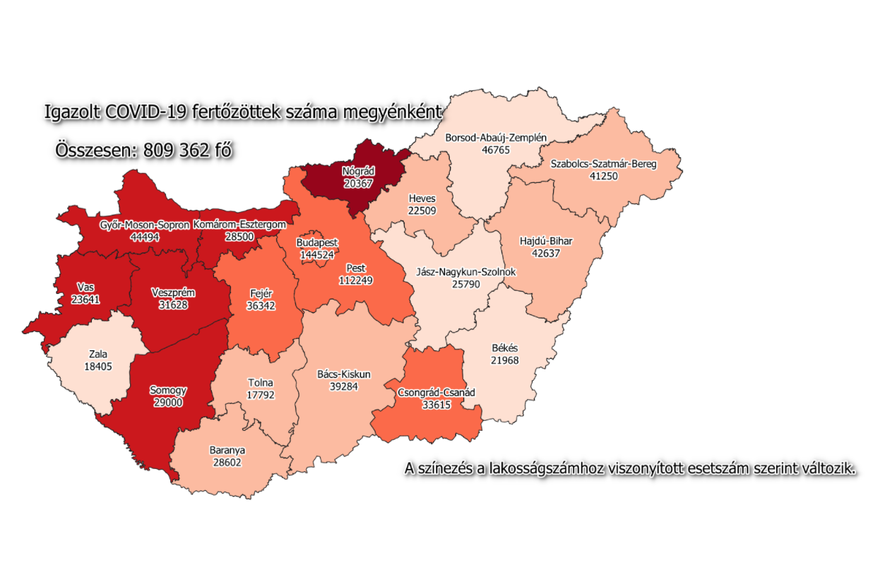 A kormányzati portálon azt írták: 809 362-re nőtt a Magyarországon azonosított fertőzöttek száma, az elhunytak száma 30 025, és 746 981 ember tekinthető gyógyultnak.
