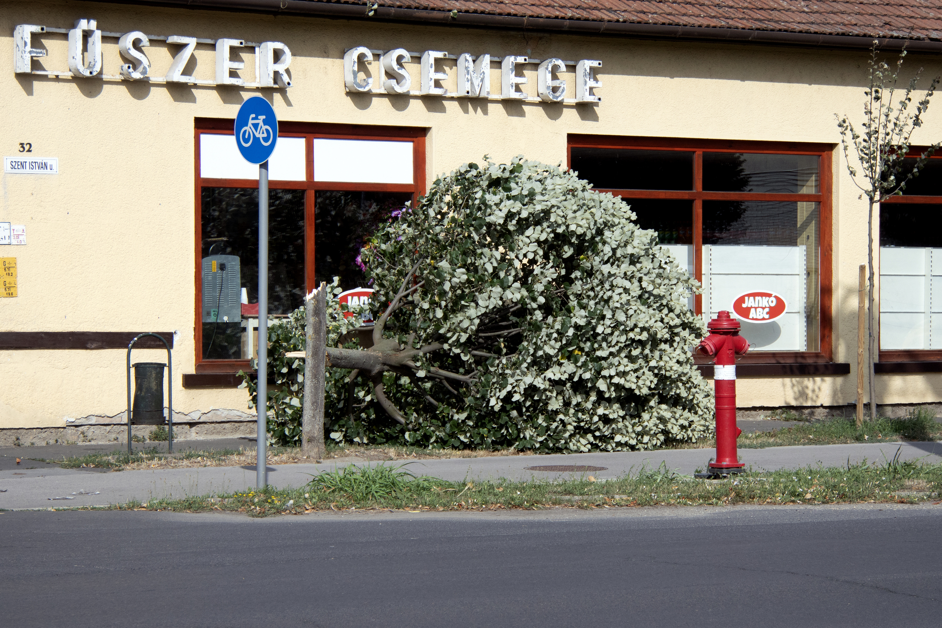 a szent istván utcában egy fa törzsét törte a szél vasárnap délután