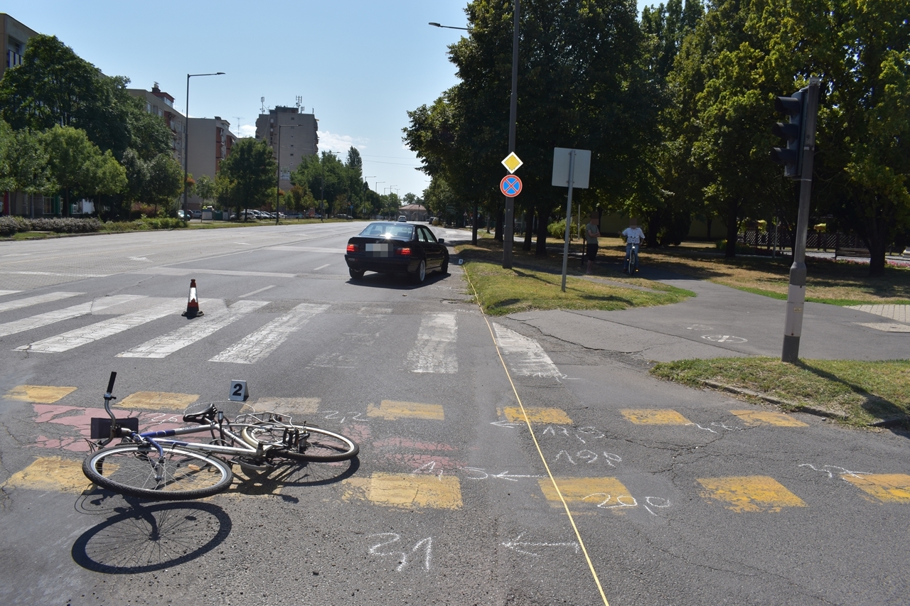 Összeütközött egy kerékpáros és egy személyautó augusztus 8-án Békéscsabán, az Andrássy út és a Petőfi utca kereszteződésében – írja a police.hu.