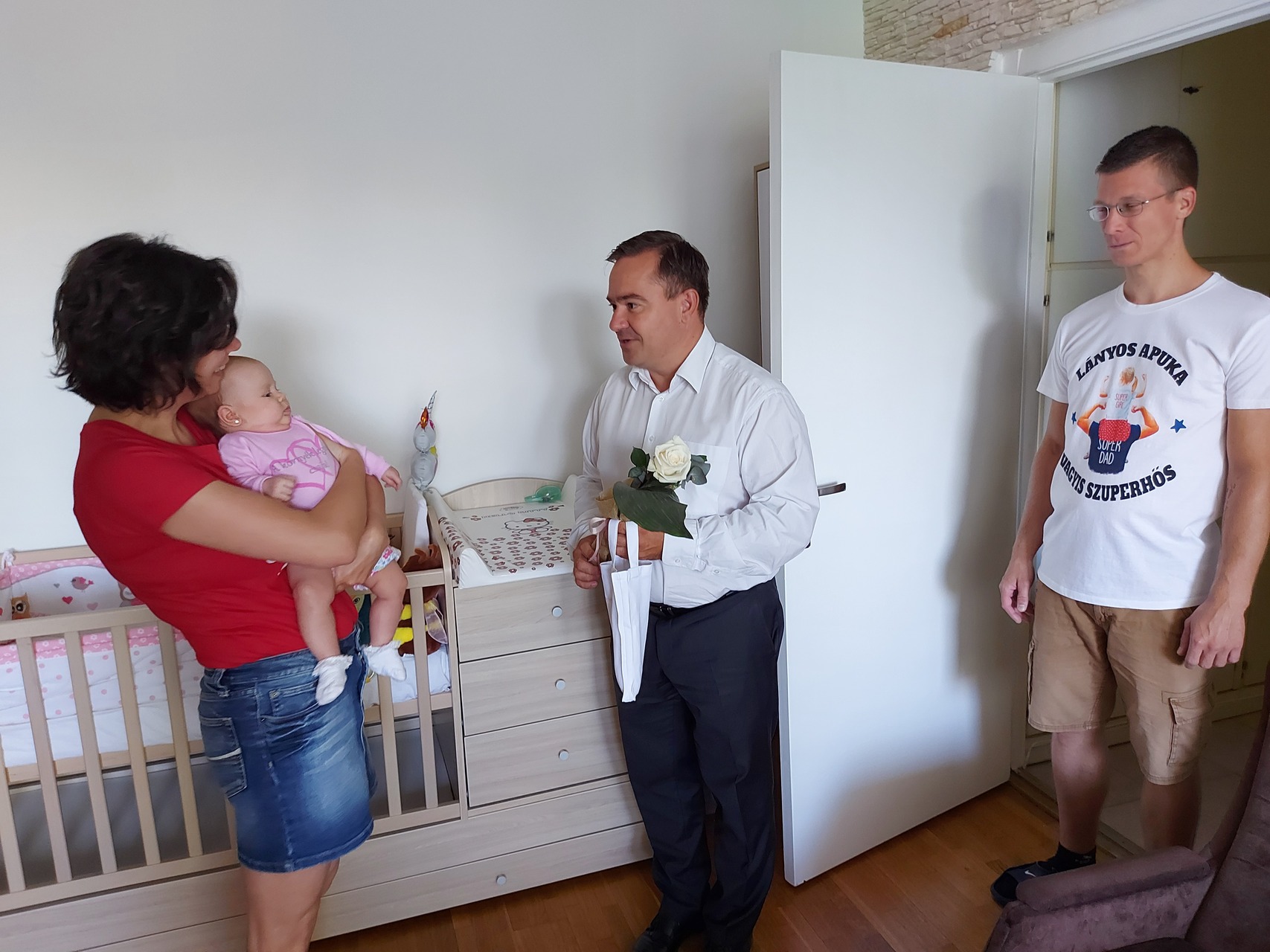 Gróh-Győri Vivient köszöntötte a gyulai Babaruha program keretében Kónya István augusztus 18-án. Az önkormányzati képviselő egy saját névvel és horoszkóppal hímzett rugdalózót, egy Póka György-festményt és egy szál virágot vitt magával a látogatásra.