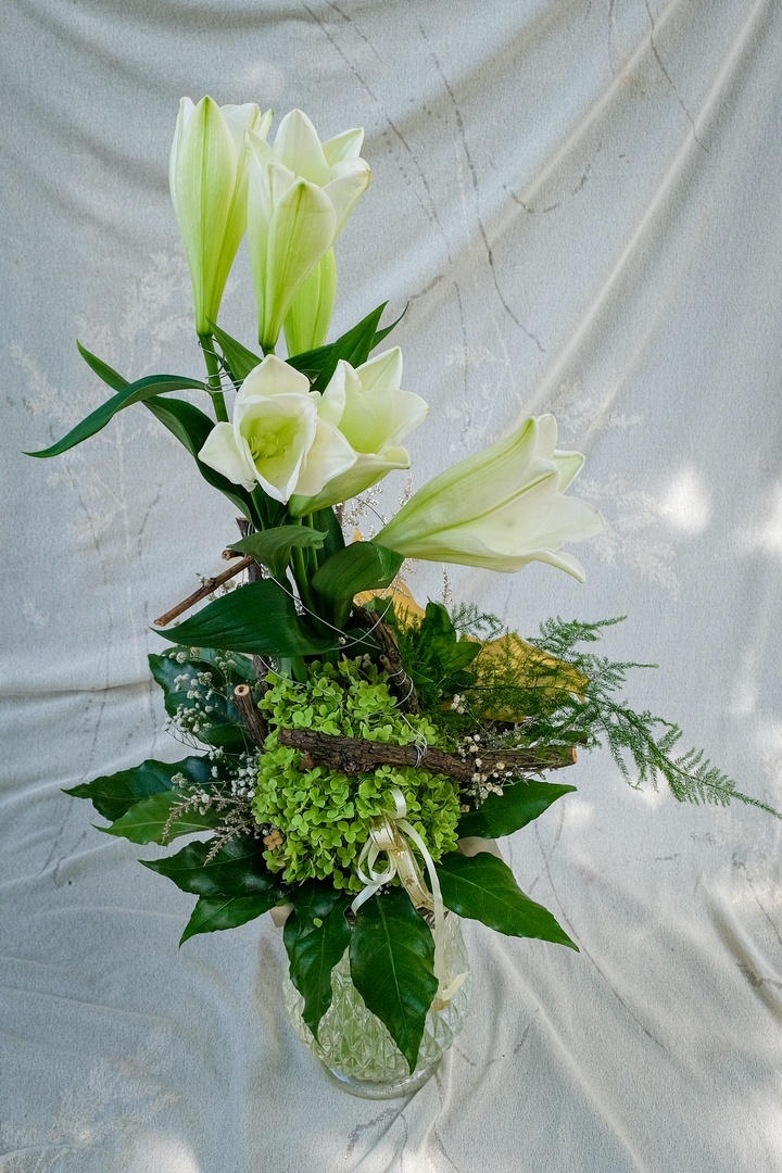 Az üzletvezető azt is megjegyezte, hogy a virágdíszek kiegészítői gyakran arany-, pezsgő- vagy ezüst-fém színűek, így a fényes és matt felületek szépen kiemelik egymást.