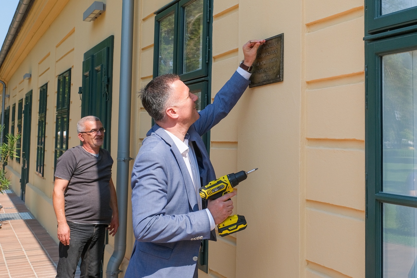 A tábla felfúrásában Görgényi Ernő polgármester is segédkezett, aki kiemelte: a műemlékek rekonstrukciója során az egyik legfontosabb szempont a történelmi hitelesség, ennek a jegyében és szellemiségében helyezték vissza a táblát.