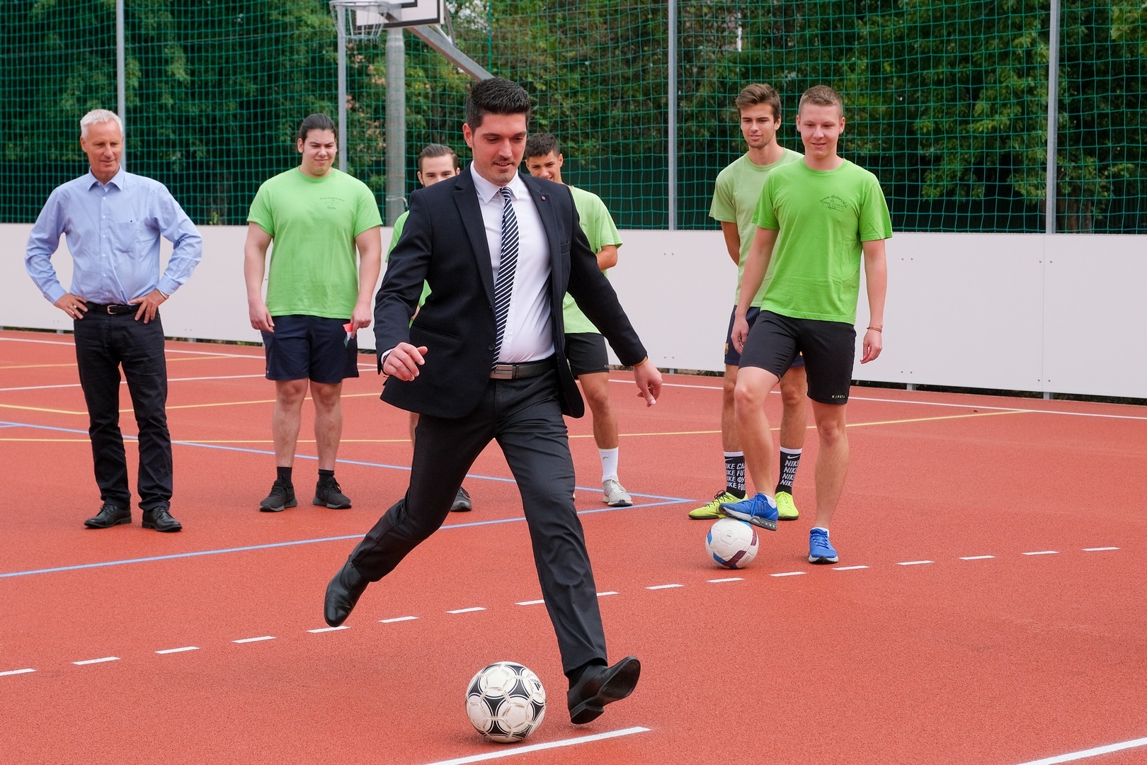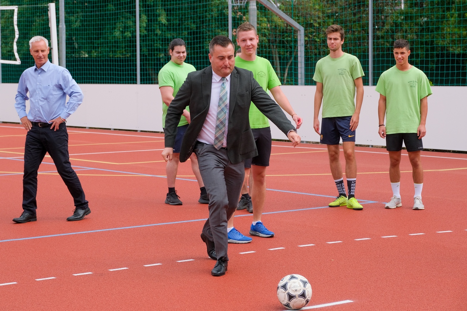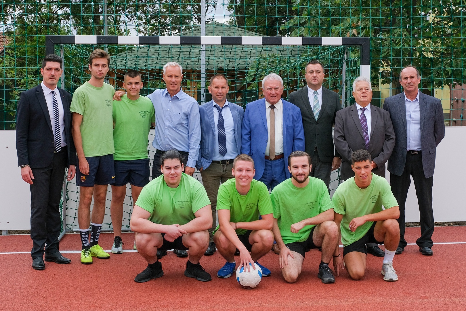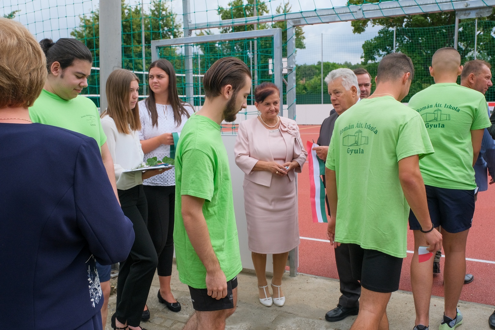 Elmondta, a beruházás 45 millió forintba került, az összegből egy körbekerített, multifunkciós udvar jöhetett létre három kosárlabdapályával, futballpályával, kézilabdapályával és röplabdapályával. Kiemelte: 462 diák örülhet az új sportudvarnak.