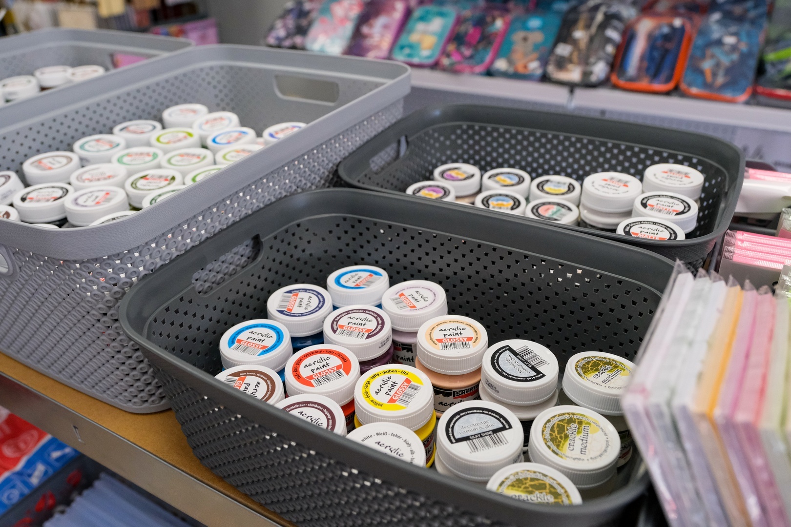 A kézműves, kreatív hobbik kedvelői is találhatnak kellékeket az üzletben, illetve a cégek alapműködéséhez szükséges eszközök is beszerezhetők.