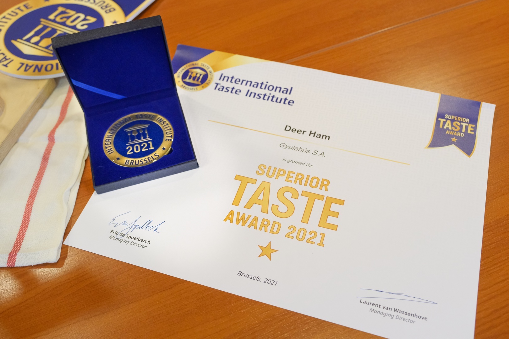 Kiemelte: a brüsszeli székhelyű Nemzetközi Íz és Minőség Intézet aranycsillagos minősítéssel díjazta a szeletelt szarvas sonkát.